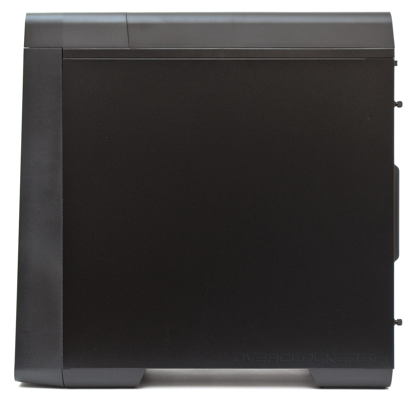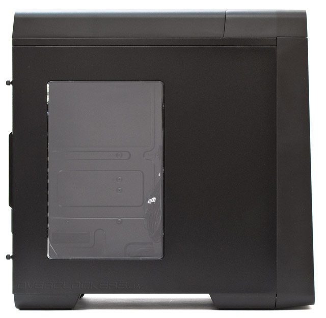 Правая боковая панель сплошная. В варианте корпуса без окна, внутри на ней был бы наклеен слой шумоизоляции, которого здесь, к сожалению, нет.