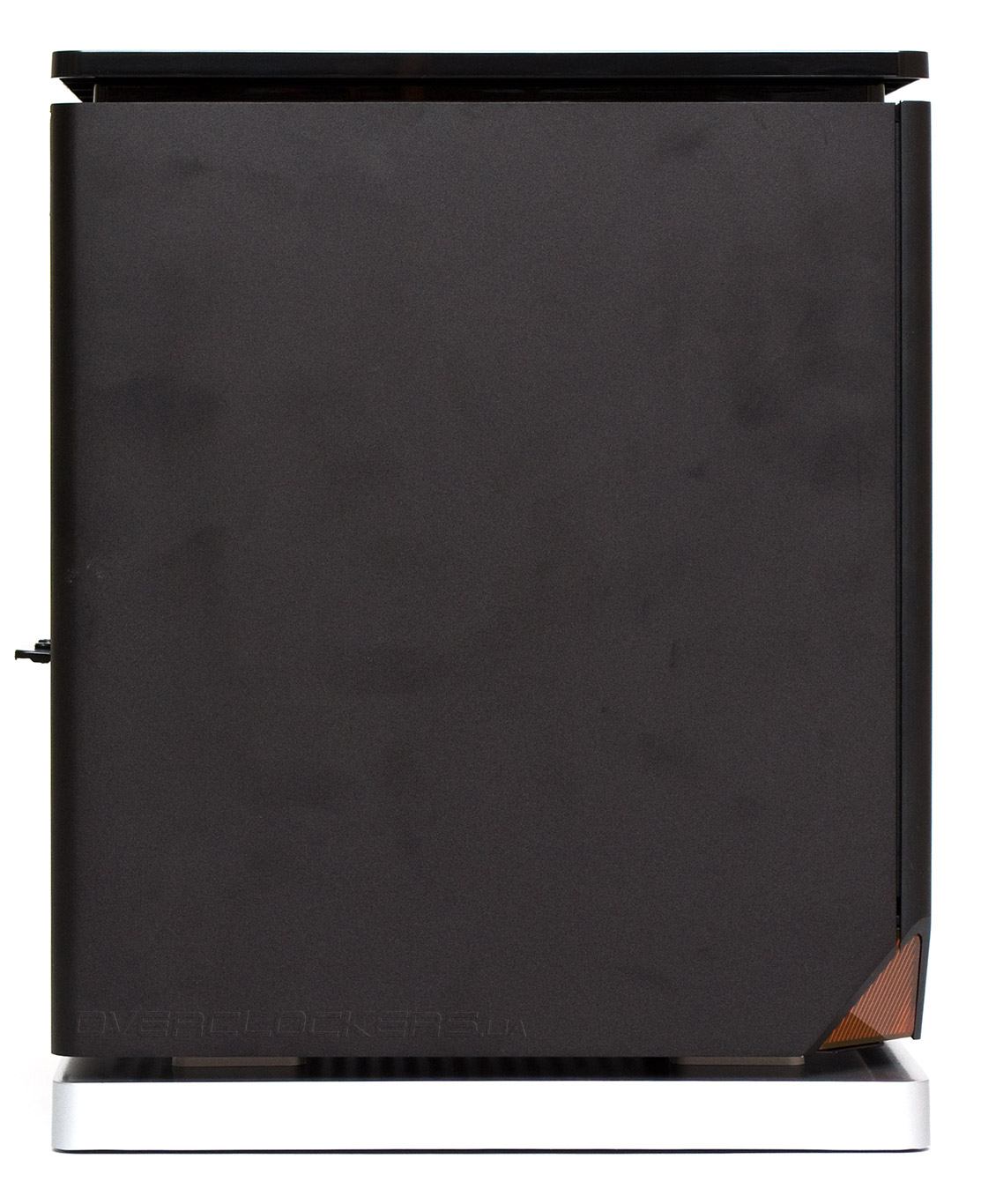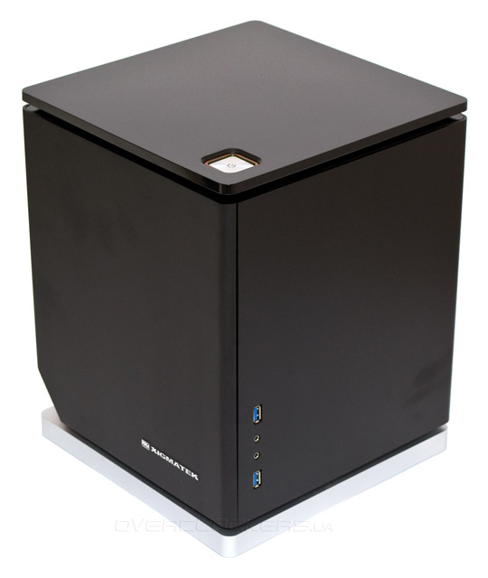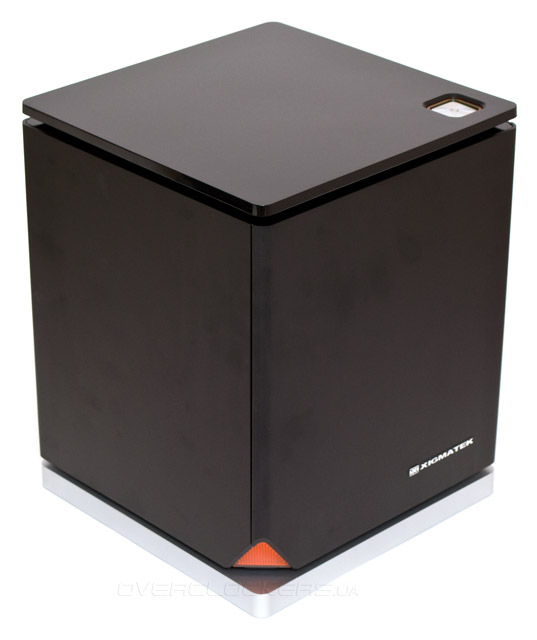 Дизайн Xigmatek Nebula одновременно очень простой, лаконичный и стильный. Преимущественно черный цвет корпуса лишь слегка разбавлен серой вставкой снизу и оранжевым светодиодом на левом переднем торце. Боковые стенки с закругленными краями, выполненные из 2,5-мм шлифованного алюминия смотрятся просто отлично. К сожалению, отпечатки пальцев на этой поверхности собираются тоже отлично, и стереть их оттуда крайне сложно, подтверждение чего можно наблюдать почти на каждой следующей фотографии. Размеры шасси составляют 260х260 мм по ширине и глубине и 330 мм в высоту. Оно выглядит очень компактным и действительно занимает на столе совсем не много места.