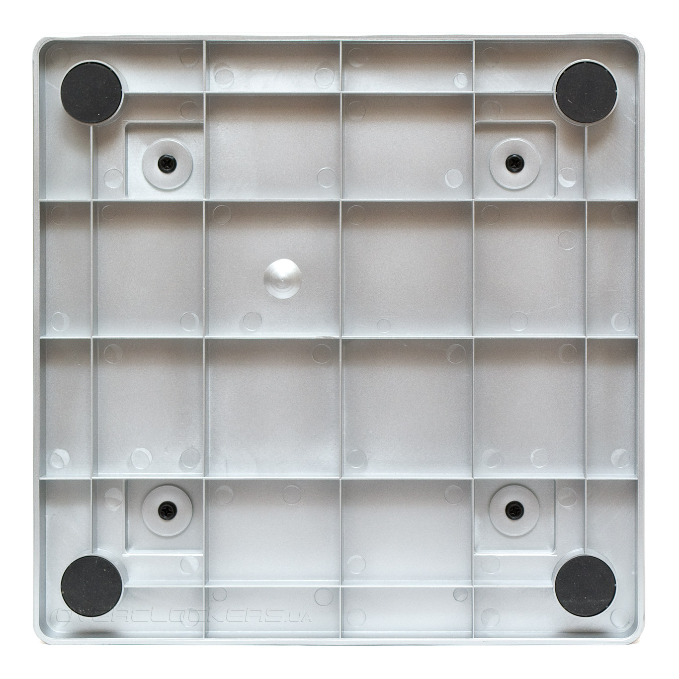 Пластиковое основание корпуса усиленно поперечными ребрами жесткости и крепится к основной части шасси с помощью четырех винтов.