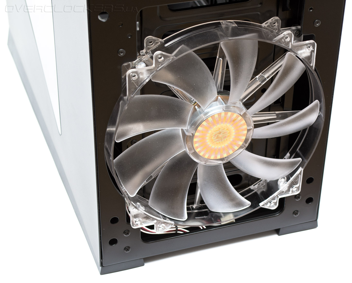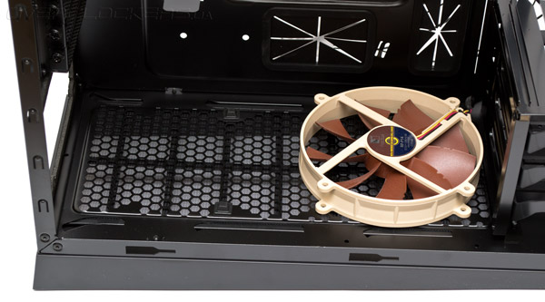 Из любопытства мы попробовали поставить вперед крупный 200-мм вентилятор толщиной 30 мм от Cooler Master из распространенной в наших широтах серии Mega Flow 200, чтобы узнать, возможна ли замена в случае неисправности родной вертушки. Он отлично подошел к месту, правда, пришлось помучиться с винтиками. Тем не менее, в тестировании принимал участие стоковый пропеллер.