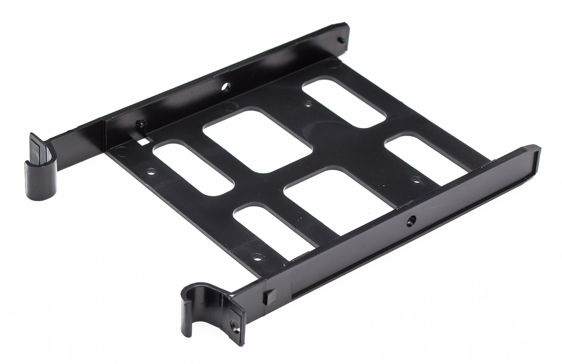 Жесткий диск на 3,5″ сюда просто вставляется и фиксируется пластиковыми выступами. Накопитель формата 2,5″ придется прикручивать винтами. Демпферов вибрации в лотках нет.