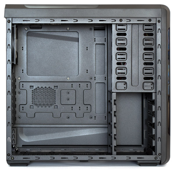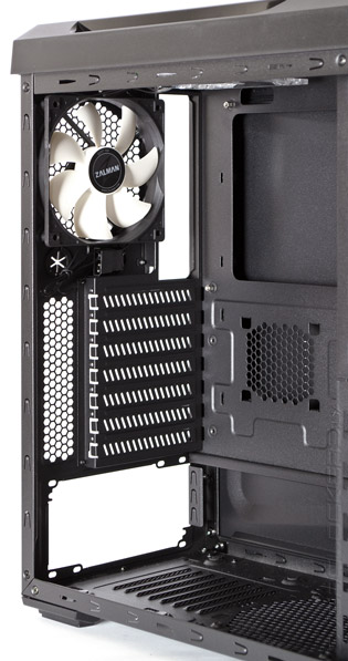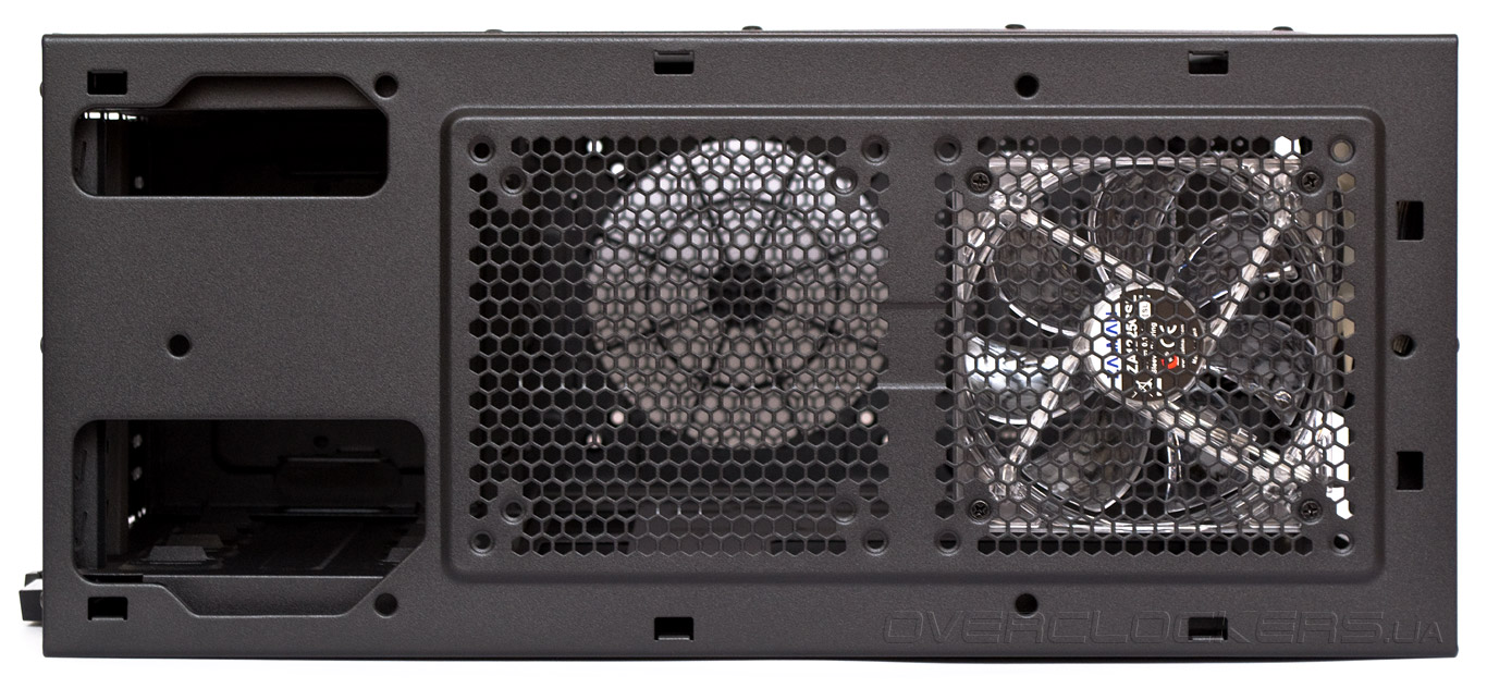После демонтажа передней панели можно снять верхнюю крышку. Здесь мы обнаружим крупноячеистую решетку, к которой можно прикрепить два 120- или 140-мм вентилятора.