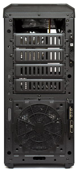 Взгляд на заднюю панель подтверждает, что заглушки слотов PCI остались одноразовыми. Никаких иных изменений относительно оригинала не наблюдается.