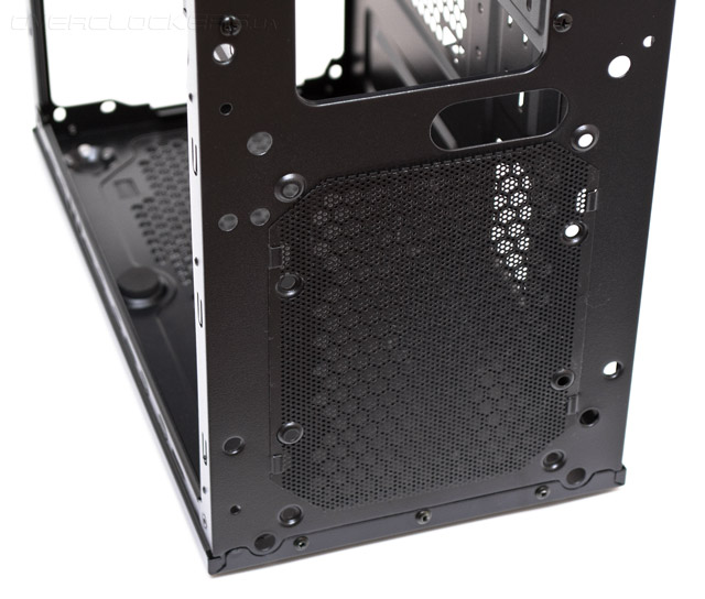 Решетка переднего вентилятора по умолчанию закрыта «пылевым фильтром». Скорее всего его имеет смысл сразу снять, поскольку для пыли в корпусе есть достаточно других отверстий. А данная сетка лишь мешает потоку воздуха, проходящего через вентилятор.