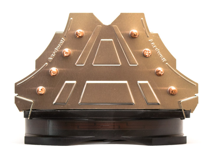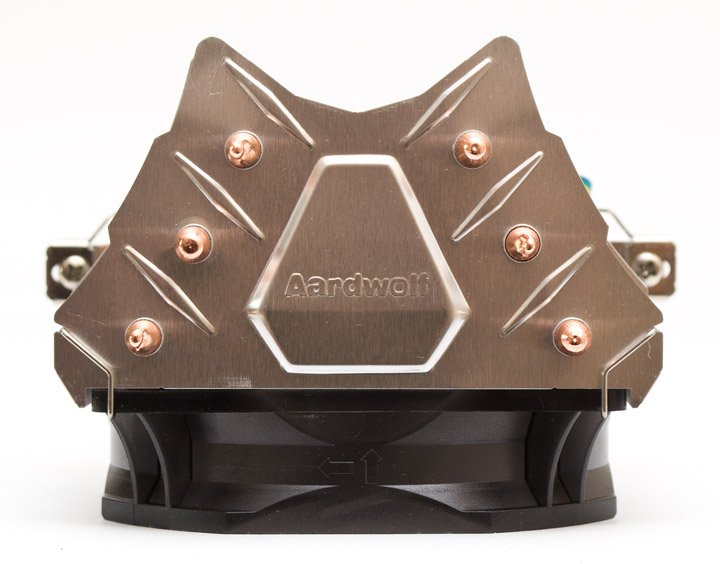 На верхней пластине ничего особо интересного обнаружено не было. Разве что надпись Aardwolf стоило бы расположить перпендикулярно к вентилятору, ведь именно так она будет нормально считываться при установке кулера в корпус.