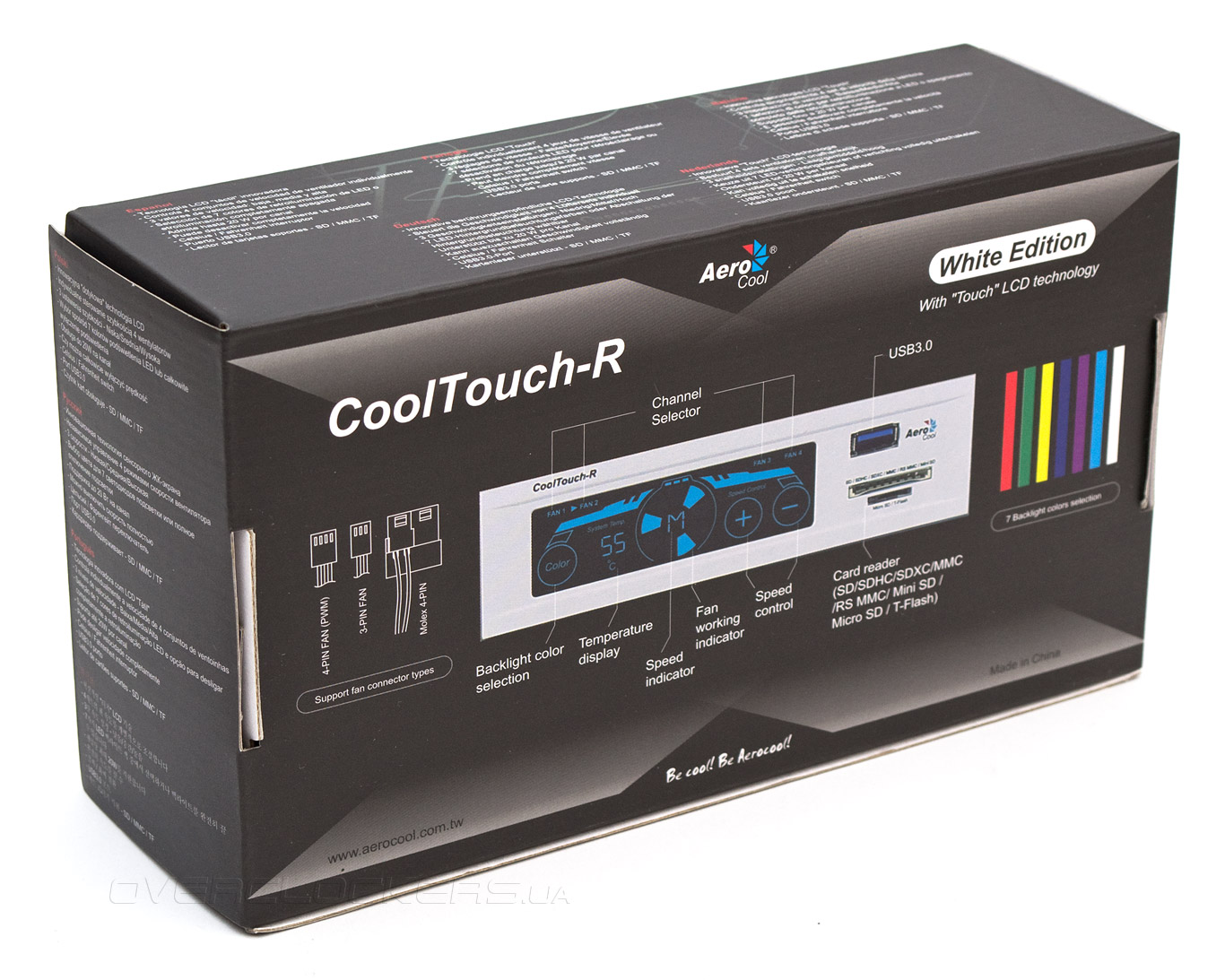 AeroCool CoolTouch-R получился в целом неплохим контроллером вентиляторов, предоставляющим дополнительную функциональность в виде USB 3.0 порта и кардридера. К его преимуществам, в том числе, можно отнести и красивый внешний вид, и совместимость с корпусами, обладающими передней дверцей. Основным недостатком данной 5,25″ панели является использование ШИМ для управления скоростью пропеллеров, которое влечет за собой появление посторонних шумов и несовместимость с некоторыми моделями вентиляторов.