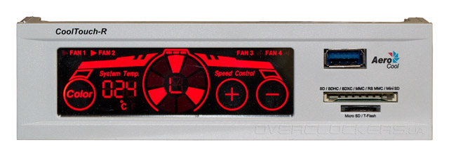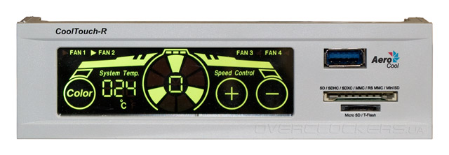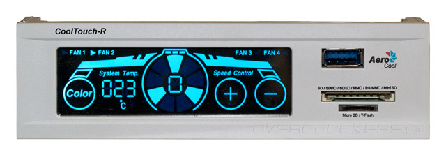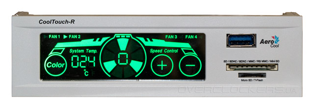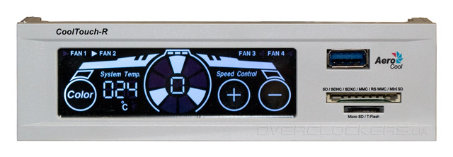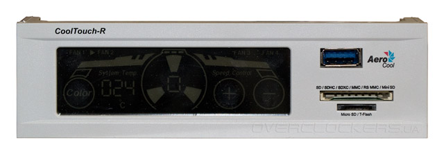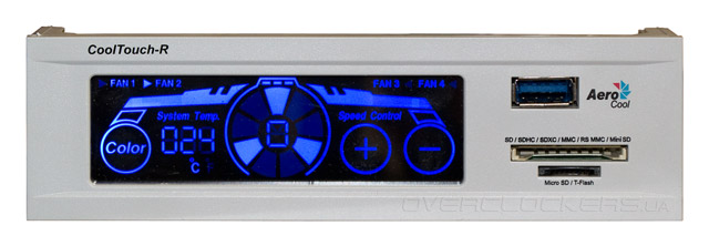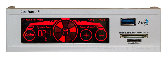 AeroCool CoolTouch-R получился в целом неплохим контроллером вентиляторов, предоставляющим дополнительную функциональность в виде USB 3.0 порта и кардридера. К его преимуществам, в том числе, можно отнести и красивый внешний вид, и совместимость с корпусами, обладающими передней дверцей. Основным недостатком данной 5,25″ панели является использование ШИМ для управления скоростью пропеллеров, которое влечет за собой появление посторонних шумов и несовместимость с некоторыми моделями вентиляторов.