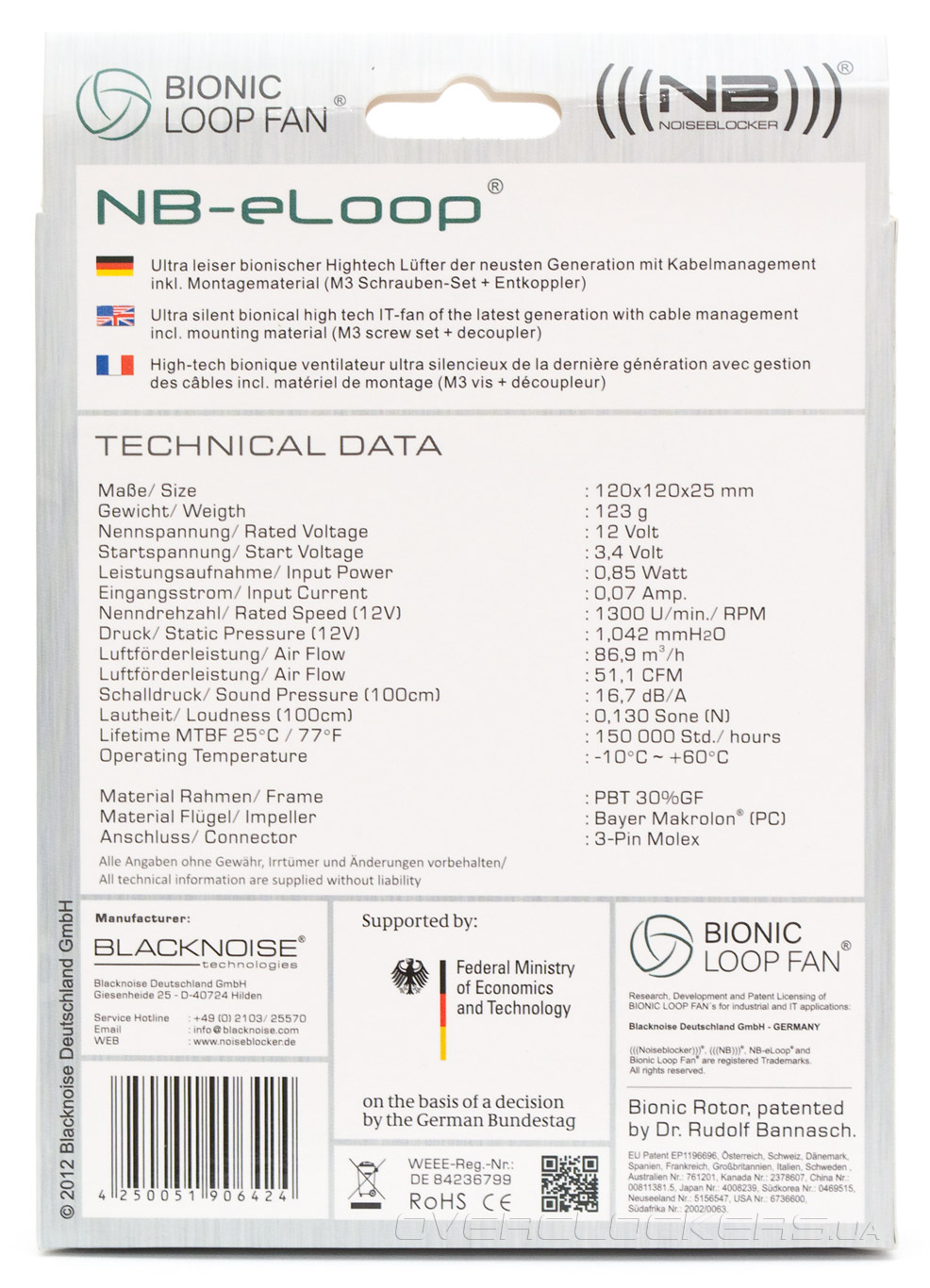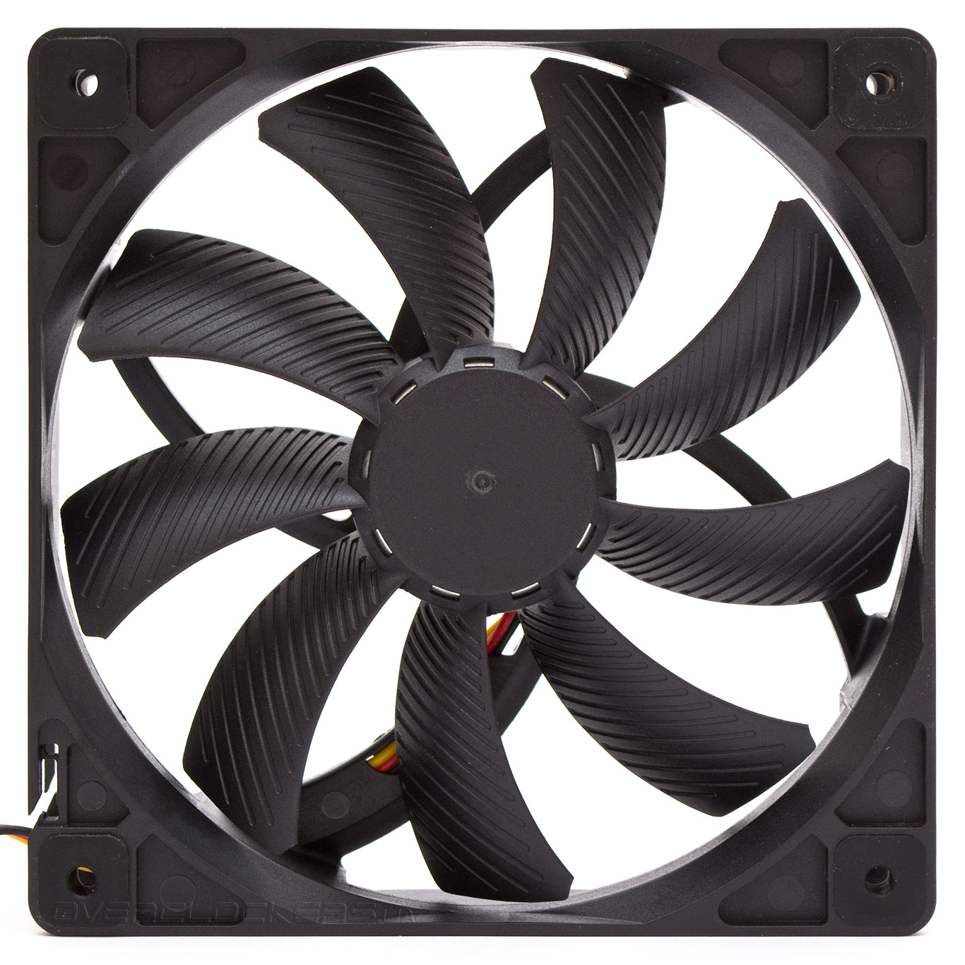 Этот немецкий вентилятор действительно представляет собой нечто свежее в индустрии ПК. Защищенный патентом, «бионический» дизайн шести зазубренных лопастей пытается на механическом уроне повторить то, чего природа добивается путем эволюционного развития пернатых уже десятки миллионов лет — сочетания максимальной тишины и эффективности крыла. Есть тут и нечто из автомобилестроения. Края лопастей заканчиваются собственной круглой рамкой, выполняющей функцию маховика — приспособления, поддерживающего инерцию движения. Это способствует снижению нагрузки на двигатель и лучшему балансу крыльчатки. Максимальная скорость вращения лопастей составляет 1300 об/мин, минимальная — ниже 600 об/мин. Интересный момент: медленнее указанного порога пропеллер вращается, но тахометр ничего не показывает. Стартовое напряжение составляет 4 В. Вентилятор работает очень тихо, гудение воздуха различимо только на предельных скоростях.