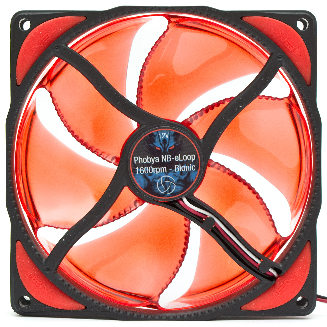 Брат-близнец Noiseblocker NB-eLoop сделанный по лицензии в исполнении от Phobya. Крыльчатка и резиновые элементы приобрели агрессивный красный оттенок. Максимальная скорость выросла до 1600 об/мин. Минимальная достигла 800 об/мин при 5 В. В акустическом отношении похож на Noiseblocker, подшипник не имеет особых призвуков, лопасти начинают гудеть воздушным потоком после 1000 об/мин. На высоких скоростях эта конструкция уже мало чем отличается по шуму от привычных вертушек.