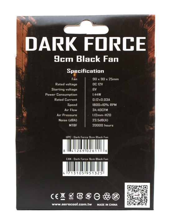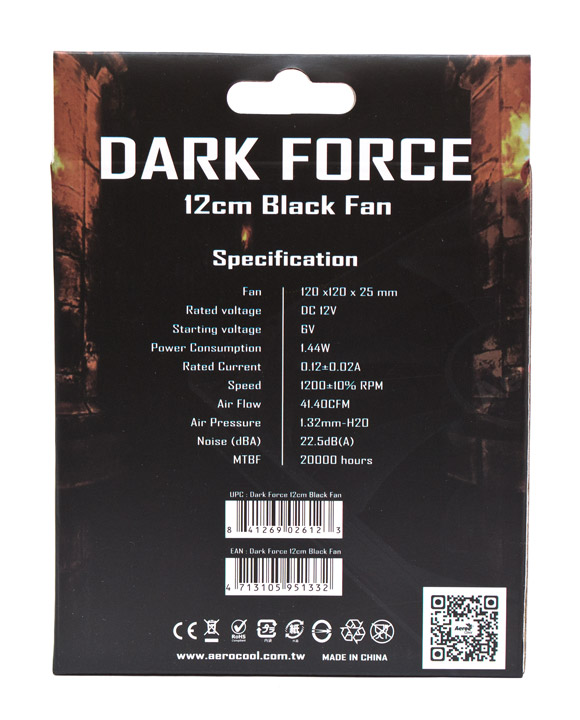 120-мм вентиляторы являются на сегодня самым популярным типоразмером, устанавливаемым на современные корпуса и кулеры, в первую очередь, из-за сочетания мощности и относительной тишины. Потому Aerocool Dark Force 12cm будет явно более востребованным среди покупателей, чем его меньшие вариации. Есть в этой линейке и пропеллеры калибра 140 и 200 мм, но к нам на обзор они, к сожалению, не попали. Коробка мало чем отличается от остальных изделий в серии, если не считать ее размера.
