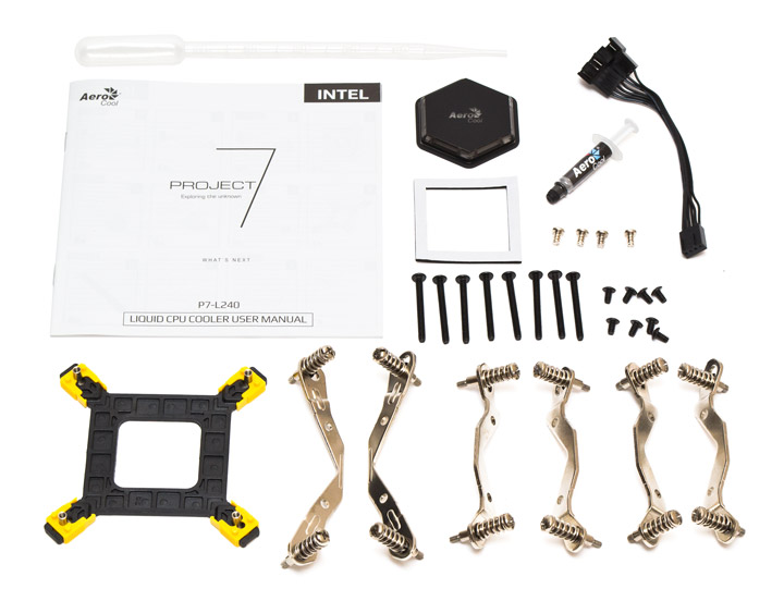 Кроме радиатора с водоблоком и двух вентиляторов в комплект поставки входит: