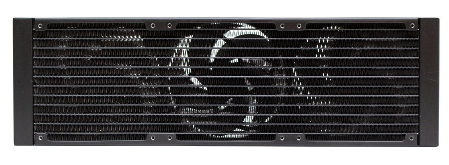 Трехсекционный радиатор имеет габариты 398 х 120 х 38 мм. В боковых ламелях есть три набора крепежных отверстий для 120-мм вентиляторов, расположенных без зазора. Ребра ленточного типа изготовлены с плотностью расположения в 13 FPI (пластин на дюйм). Между ребрами проходят 12 каналов, через которые прокачивается хладагент.