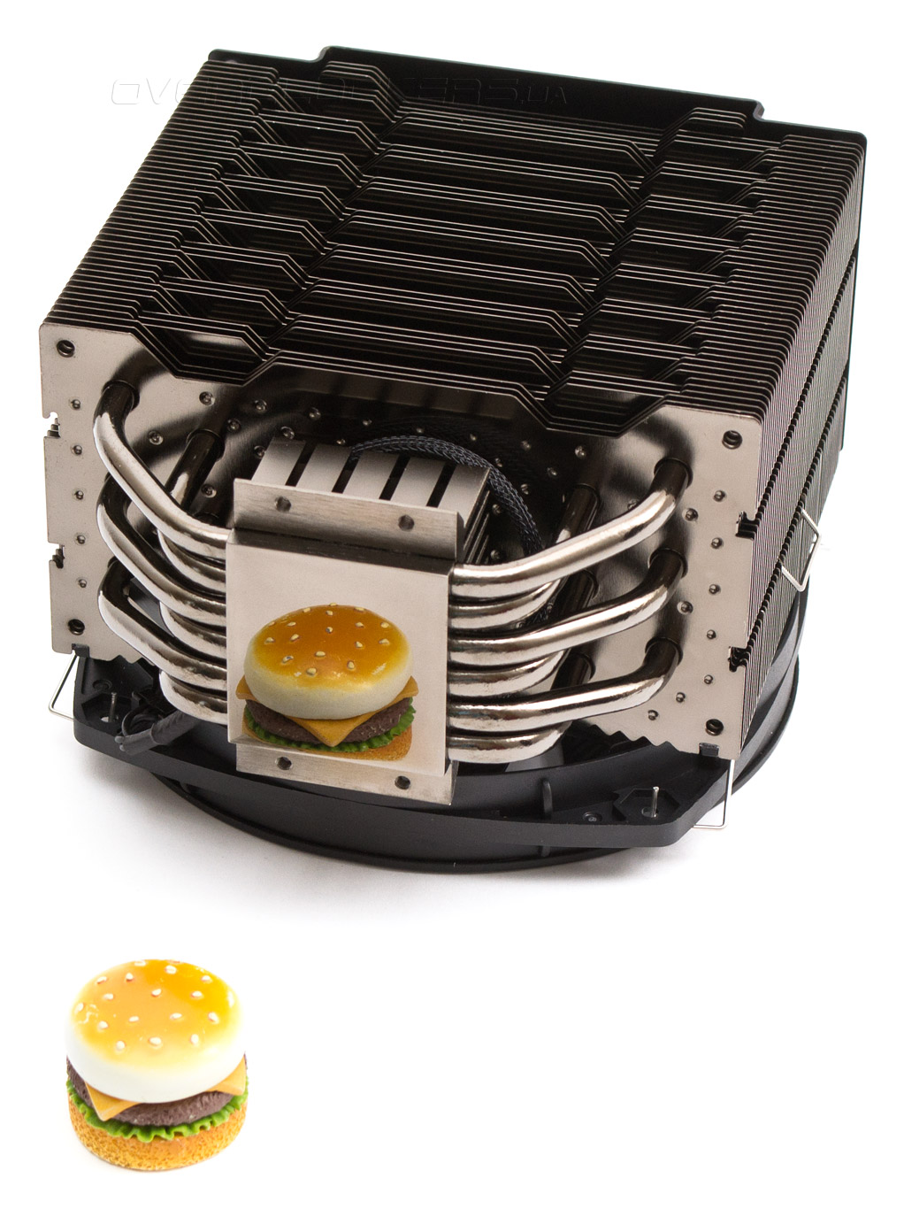 Прямо над основанием надстроен небольшой дополнительный радиатор, размерам которого могут позавидовать иные охладители, устанавливаемые на микросхемы системной логики материнских плат. Однако, его ребра повернуты в поперек направления воздушного потока от вентилятора, что снижает их общую эффективность.
