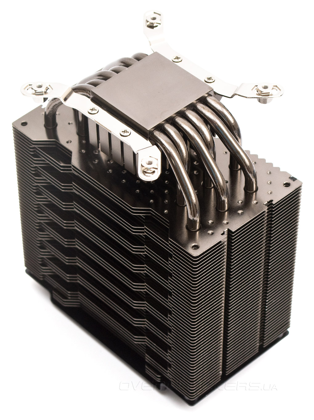 | Материал радиатора и конструкция | Вертикальный радиатор из алюминиевых пластин, нанизанных на 6 медных тепловых трубок диаметром 6 мм, расположенных U-образно. Ребра радиатора, тепловые трубки и основание никелированы | Вертикальная двухсекционная конструкция из алюминиевых пластин, нанизанных на 6 медных теплотрубок диаметром 6 мм, расположенных U-образно. Тепловые трубки и основание никелированы, все соединения пропаяны |