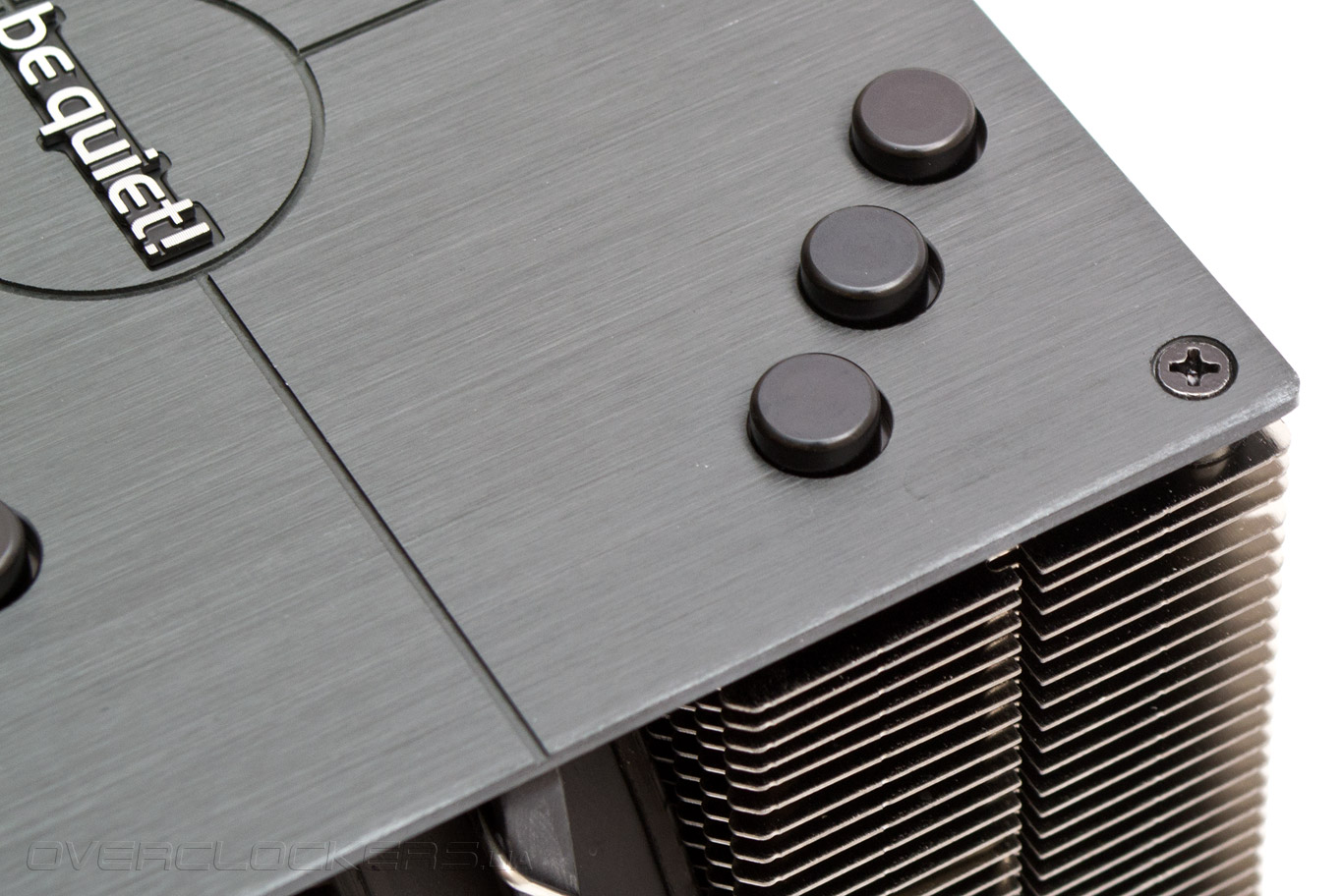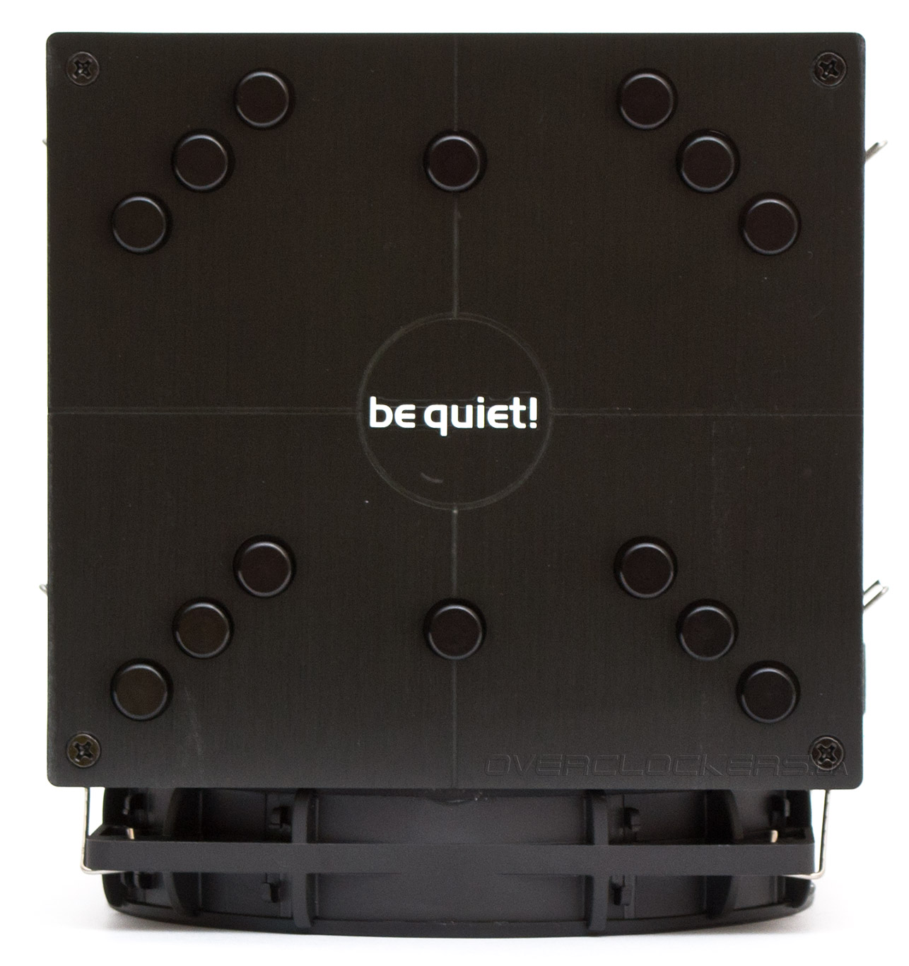 Сверху кулер закрыт черной декоративной крышкой, на ощупь похожей на полированный алюминий. По центру находится серебристый логотип фирмы. Через металлическую верхнюю пластину проступают пластиковые колпачки, закрывающие концы тепловых трубок.