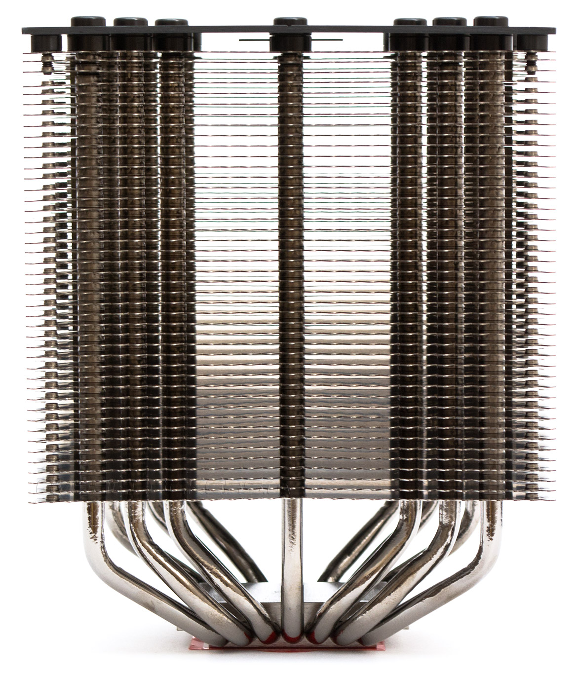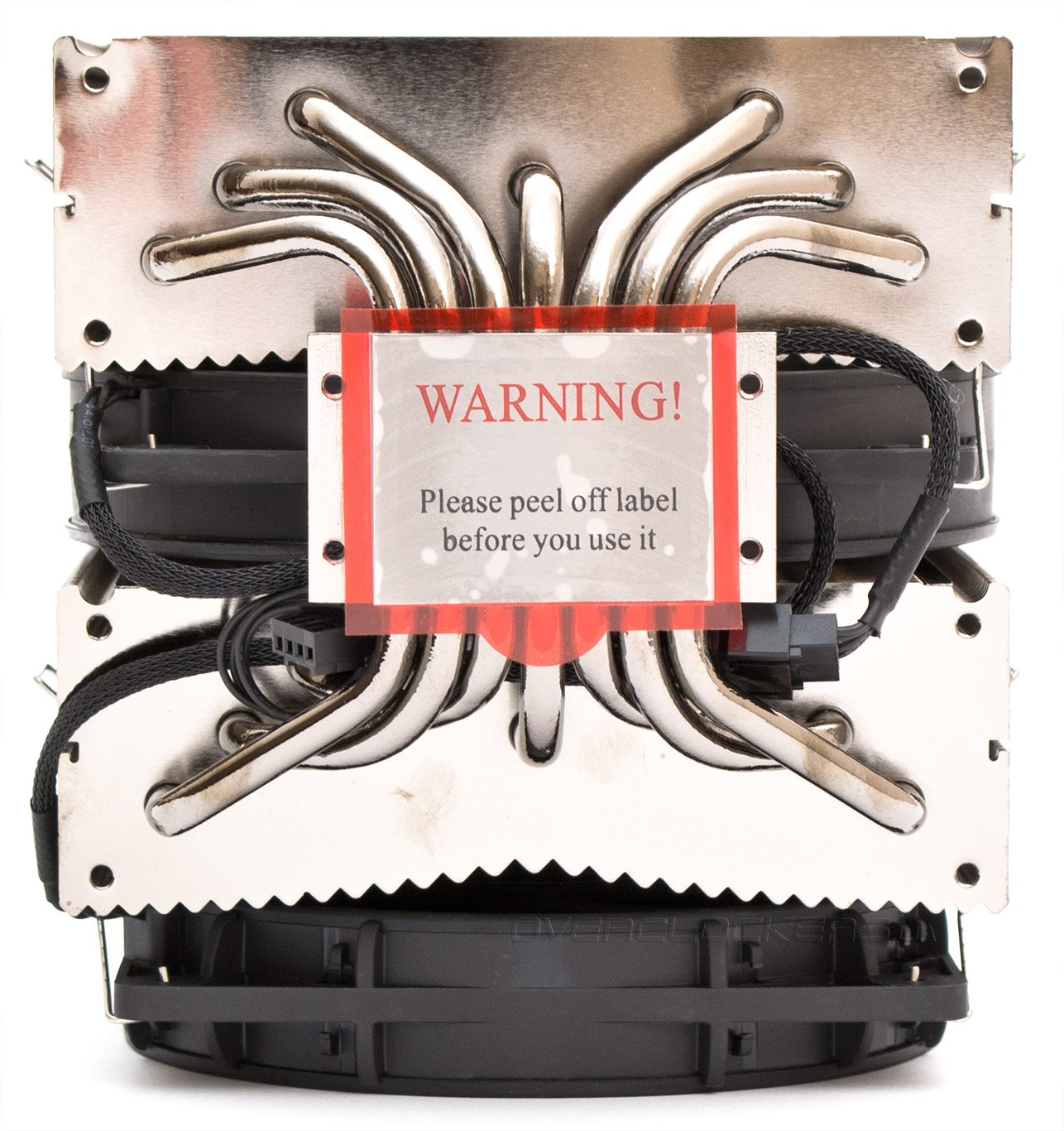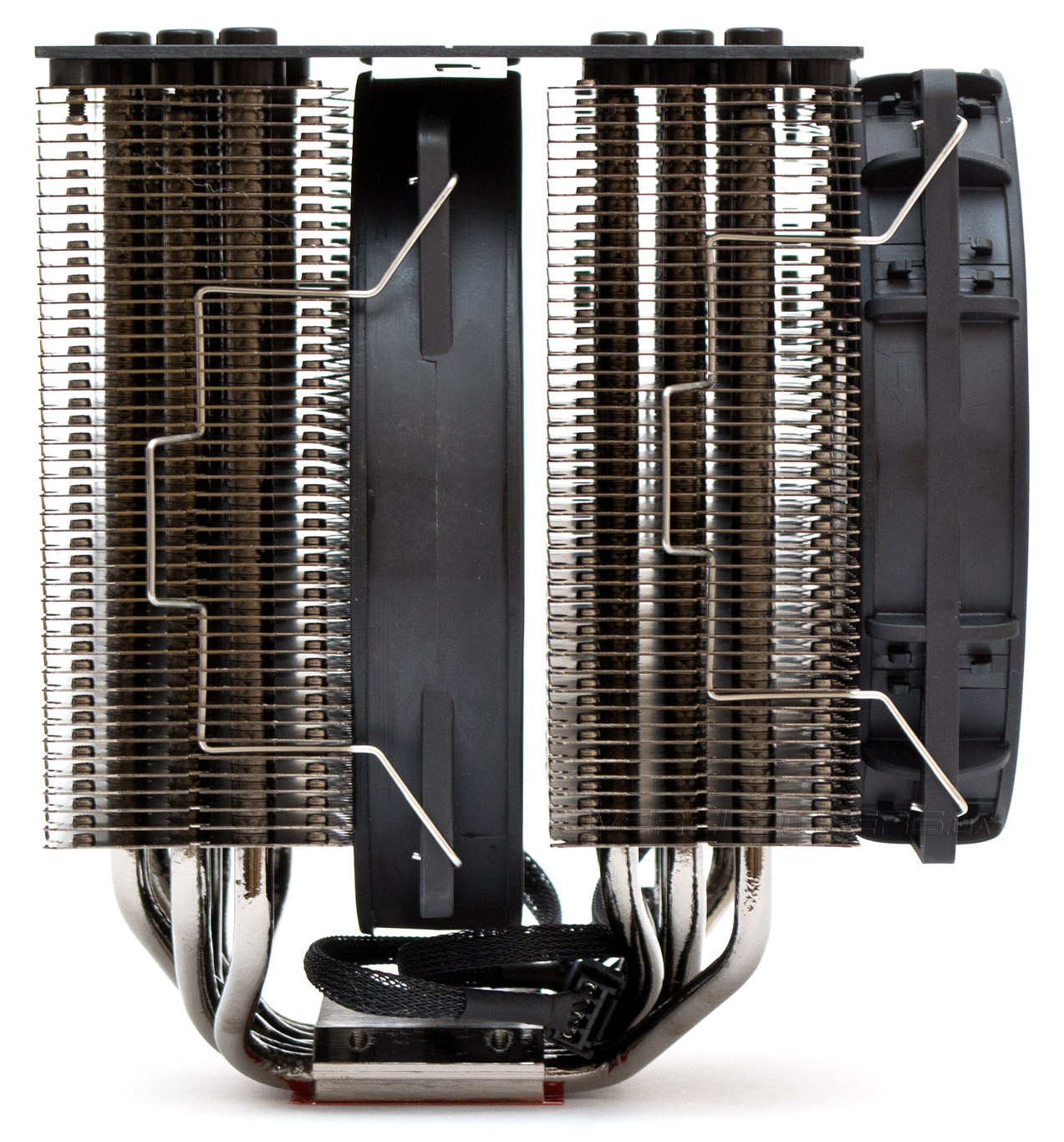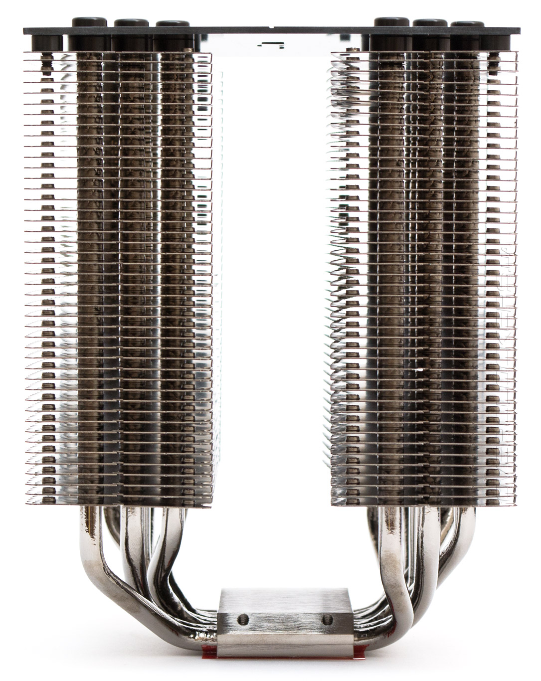Каждая секция радиатора состоит из 44 алюминиевых пластин, покрытых никелем и расположенных с зазором в 2 мм. С установленным в середину вентилятором, кулер достигает в ширину 138 мм, однако крепежные скобы выпирают еще дальше, вероятно дотягиваясь до первого слота PCI-E в установленном состоянии.