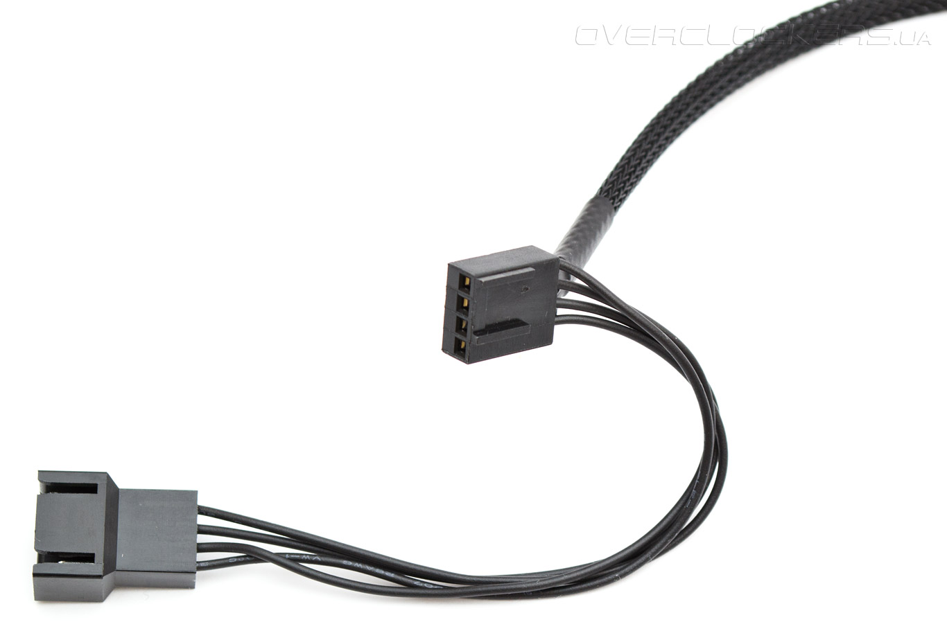 120-мм модель работает в диапазоне скорости от 700 до 1700 об/мин Подшипник тоже гидродинамический, но и его тишина нарушается стрекотом из-за ШИМ-управления. Длина кабеля питания 250 мм, а удлинителя для подключения второго вентилятора — 100 мм.