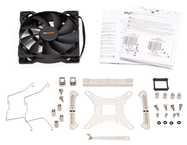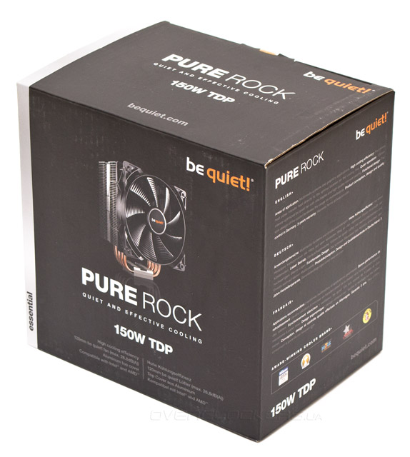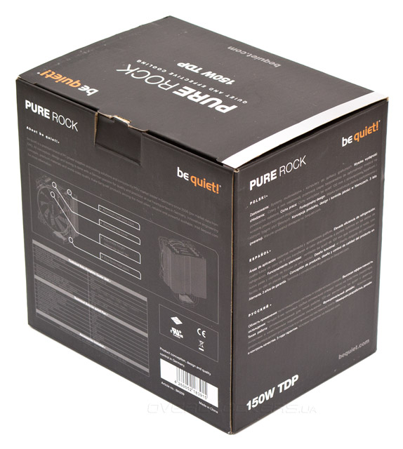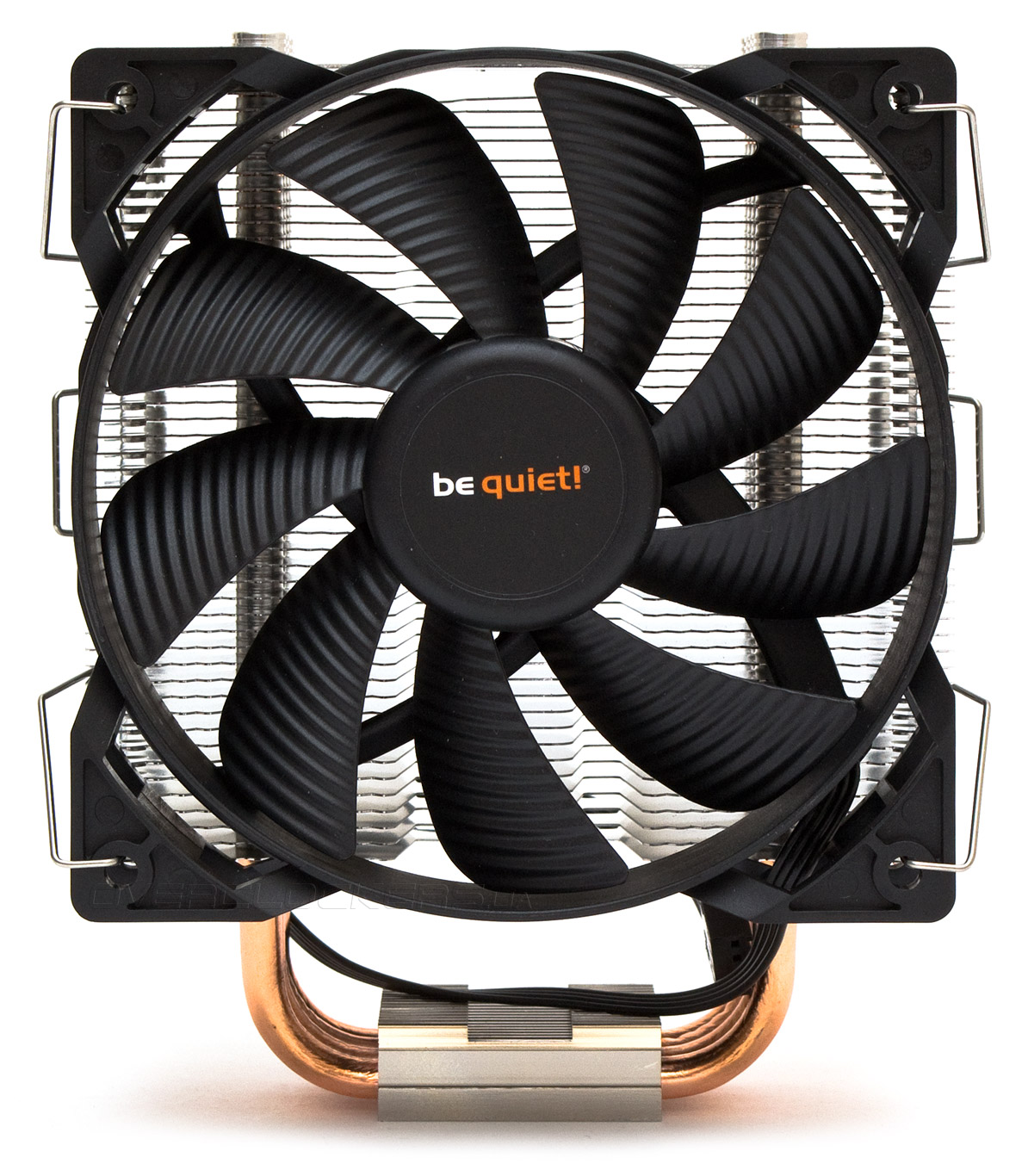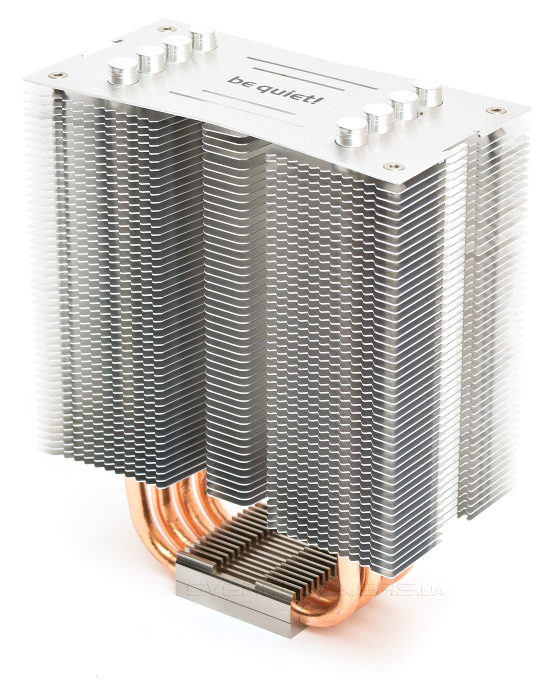 Фактически, Pure Rock является классическим башенным кулером с U-образно расположенными тепловыми трубками. Алюминиевые ребра радиатора имеют несколько аэродинамических оптимизаций в виде зазубренных граней пластин, суженных в центральной части, и углубление посередине радиатора, призванное уменьшить уровень шума от потоков воздуха и ликвидировать мертвую зону движения воздуха за подшипником вентилятора.