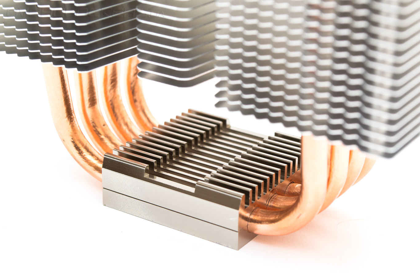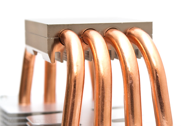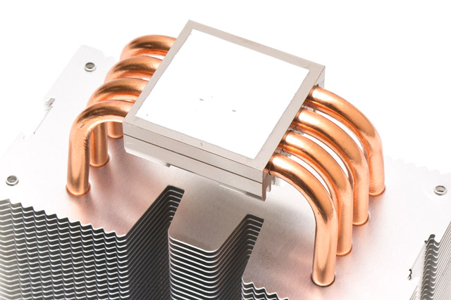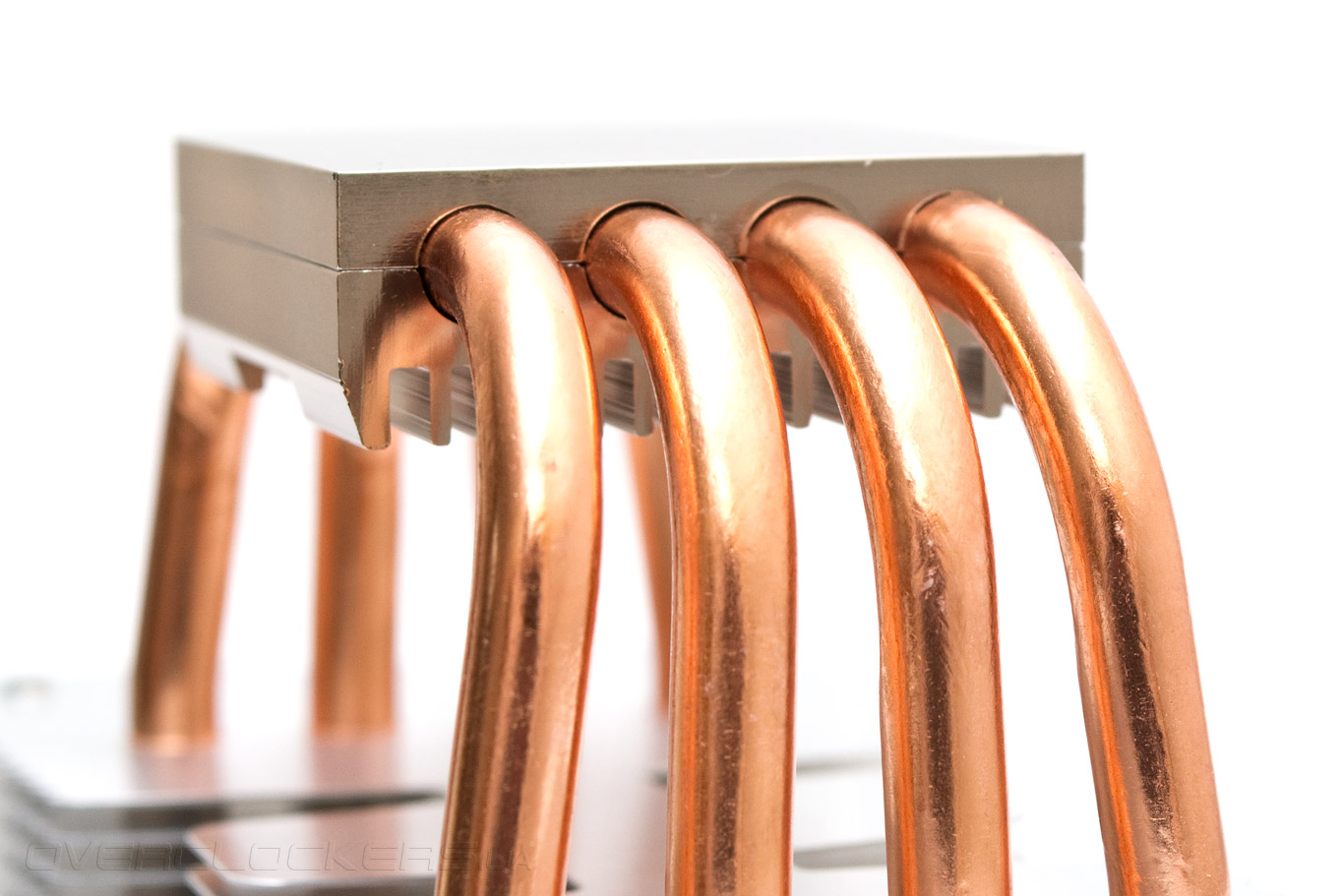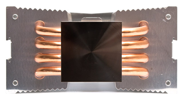 Трубки запрессованы в основание настолько плотно, что невозможно визуально определить, применен ли для их крепления припой или теплопроводящий клей.