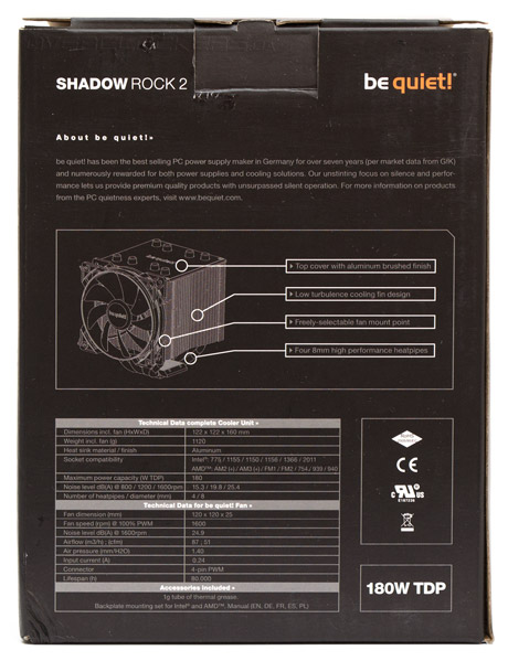 be quiet! Shadow Rock 2 продается в рознице упакованным в простую, небольшую, но довольно красивую коробку черного цвета.