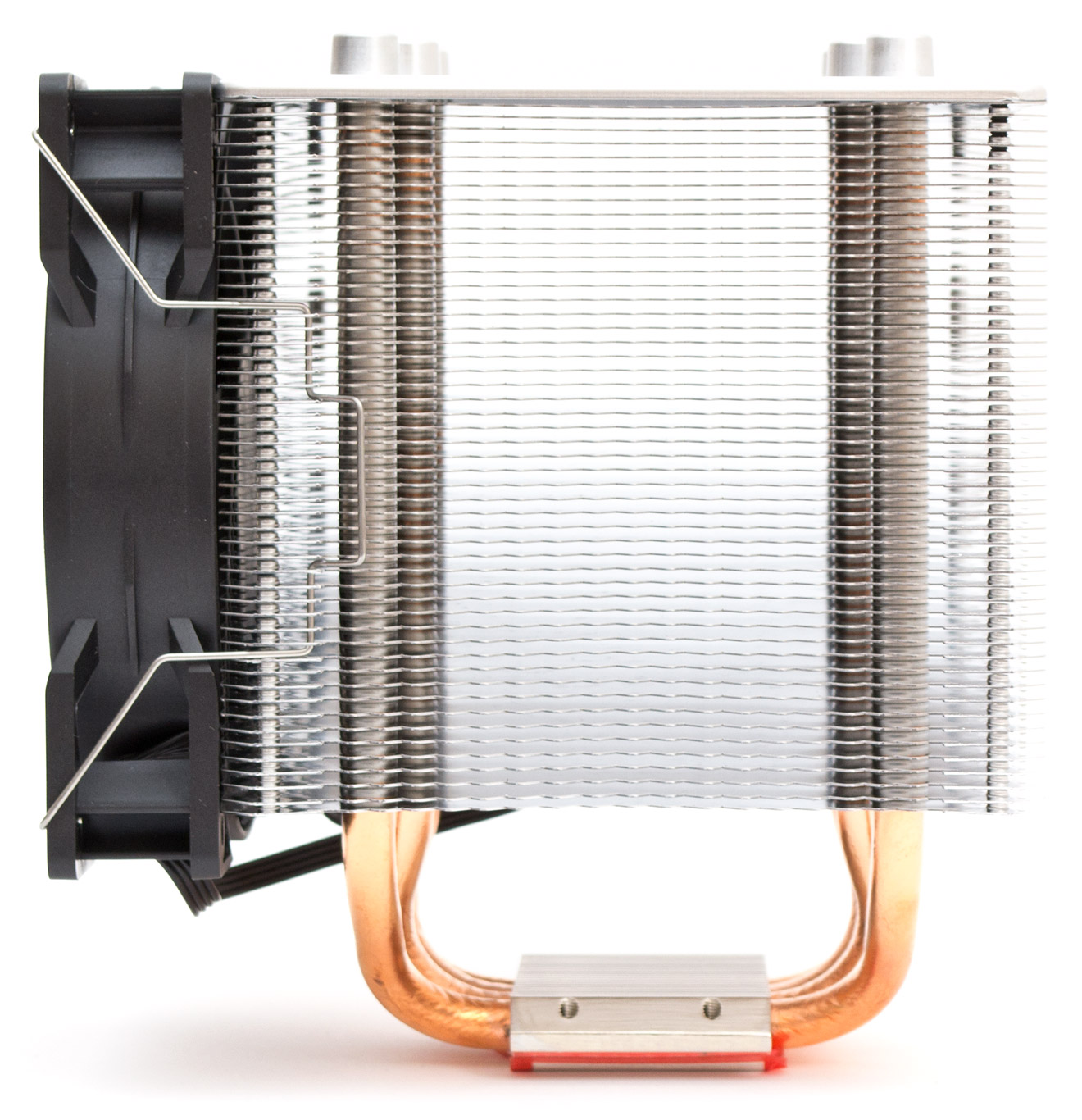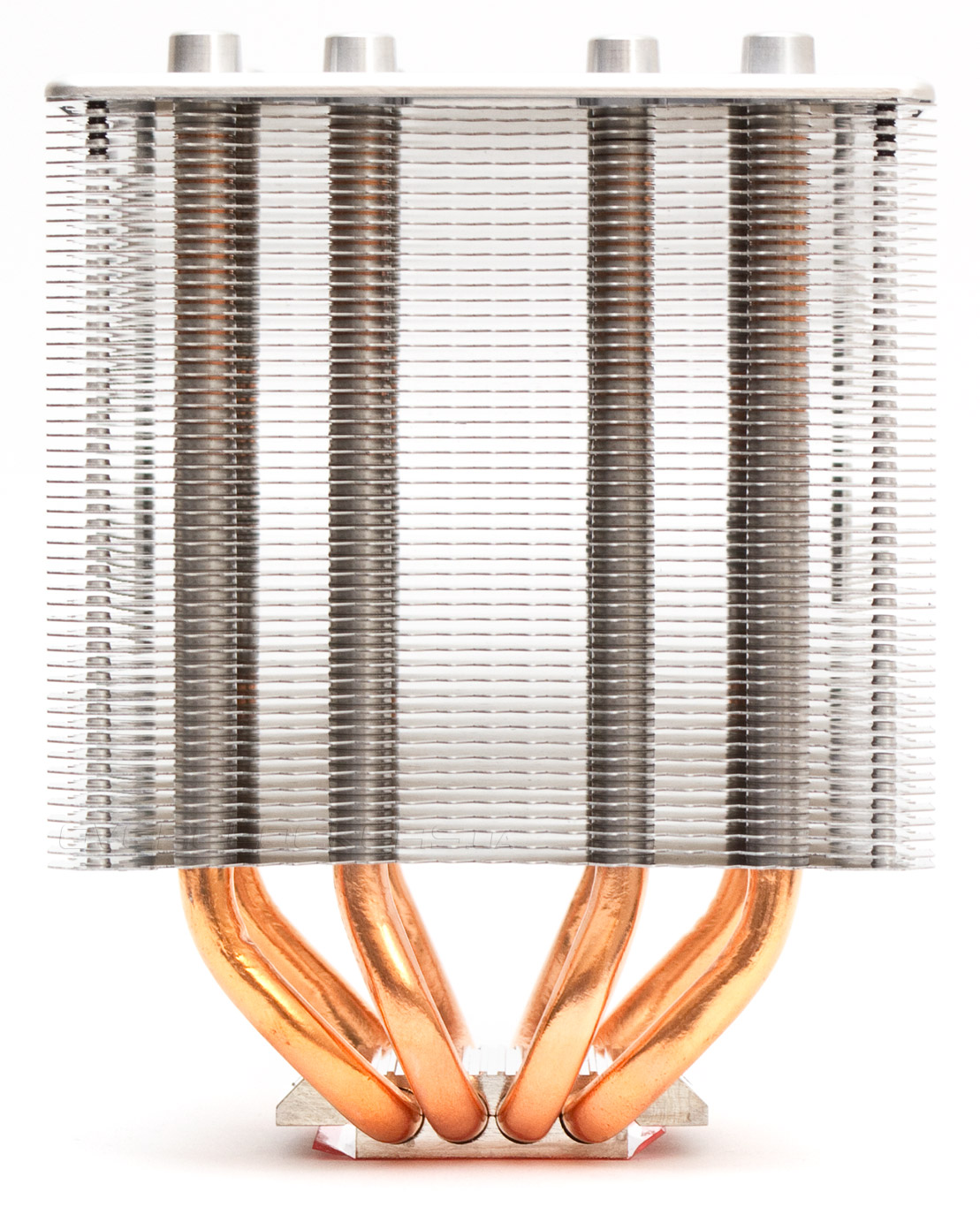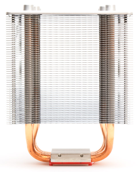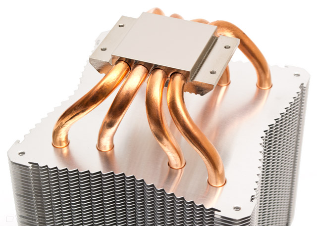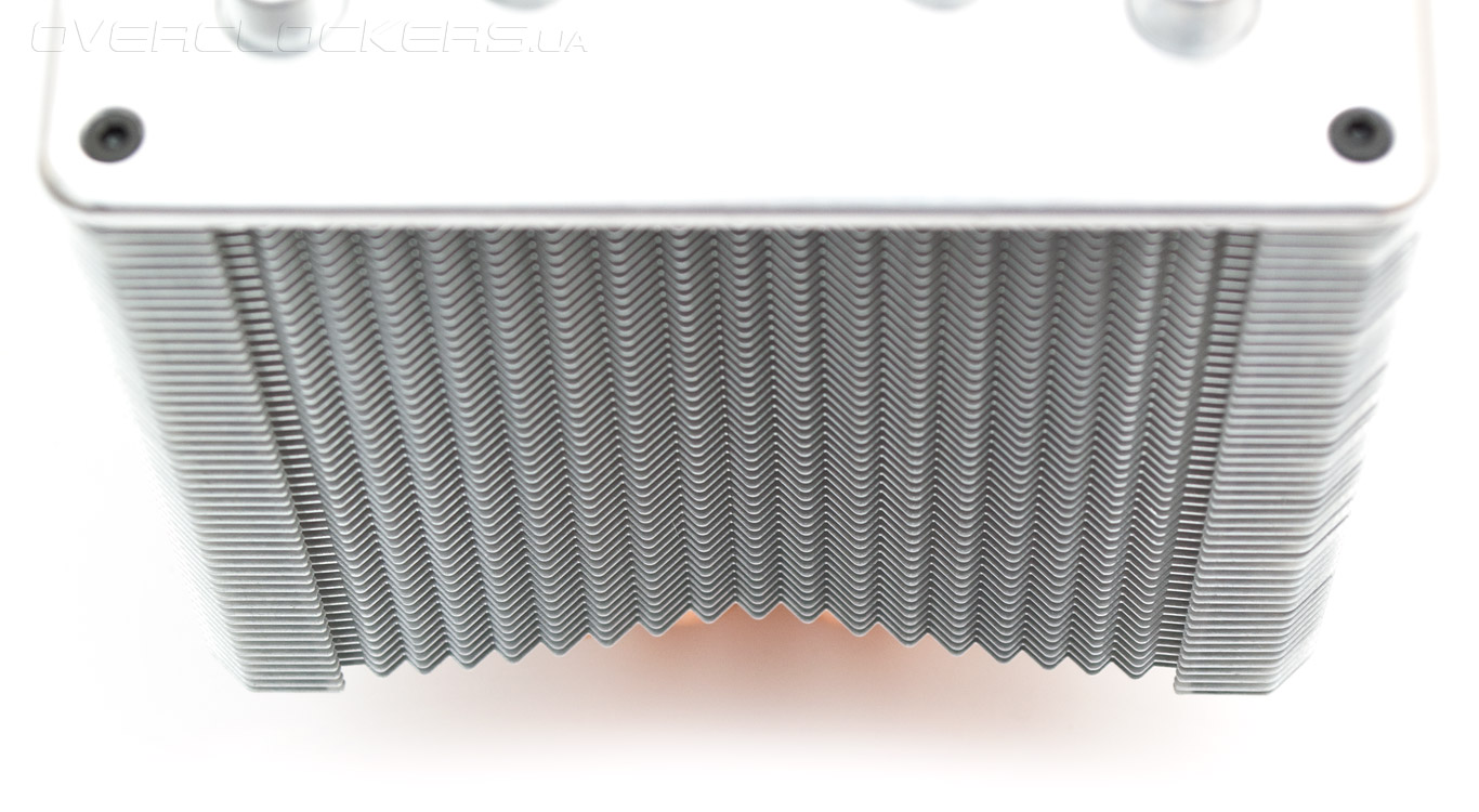 Четыре тепловые трубки имеют нестандартную толщину в 8 мм каждая и равномерно разведены в стороны радиатора. Межреберная дистанция составляет 1,8 мм.