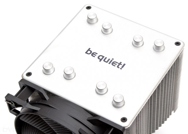 Сверху кулер закрыт цельной металлической пластиной, посередине которой красуется логотип производителя. Хотя она и выглядит как декоративное украшение, тем не менее, сообщает конструкции определенную жесткость.