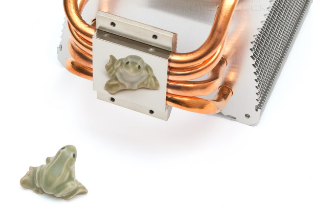 Подошва кулера отполирована до зеркального блеска. Поверхность достаточно ровная, о чем свидетельствуют механические замеры и отсутствие оптических искажений.
