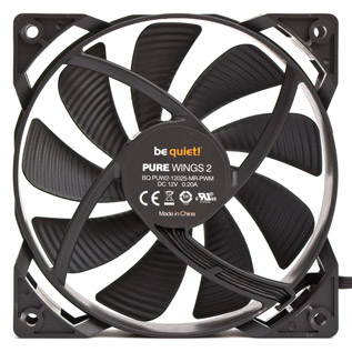 Кулер оснащен одним 120-мм вентилятором, скорость работы которого составляет от 450 до 1700 об/мин и контролируется с помощью ШИМ. В качестве подшипника используется нарезная втулка скольжения. Длина кабеля питания 220 мм, подключение четырехконтактное. Вентилятор работает бесшумно до 1000 об/мин, а слышным становится при 1200 об/мин. И даже вплоть до предельных оборотов он издает умеренный уровень шума. Это при том, что какие-либо элементы виброизоляции отсутствуют. Электрические характеристики и маркировка видны на фотографии.