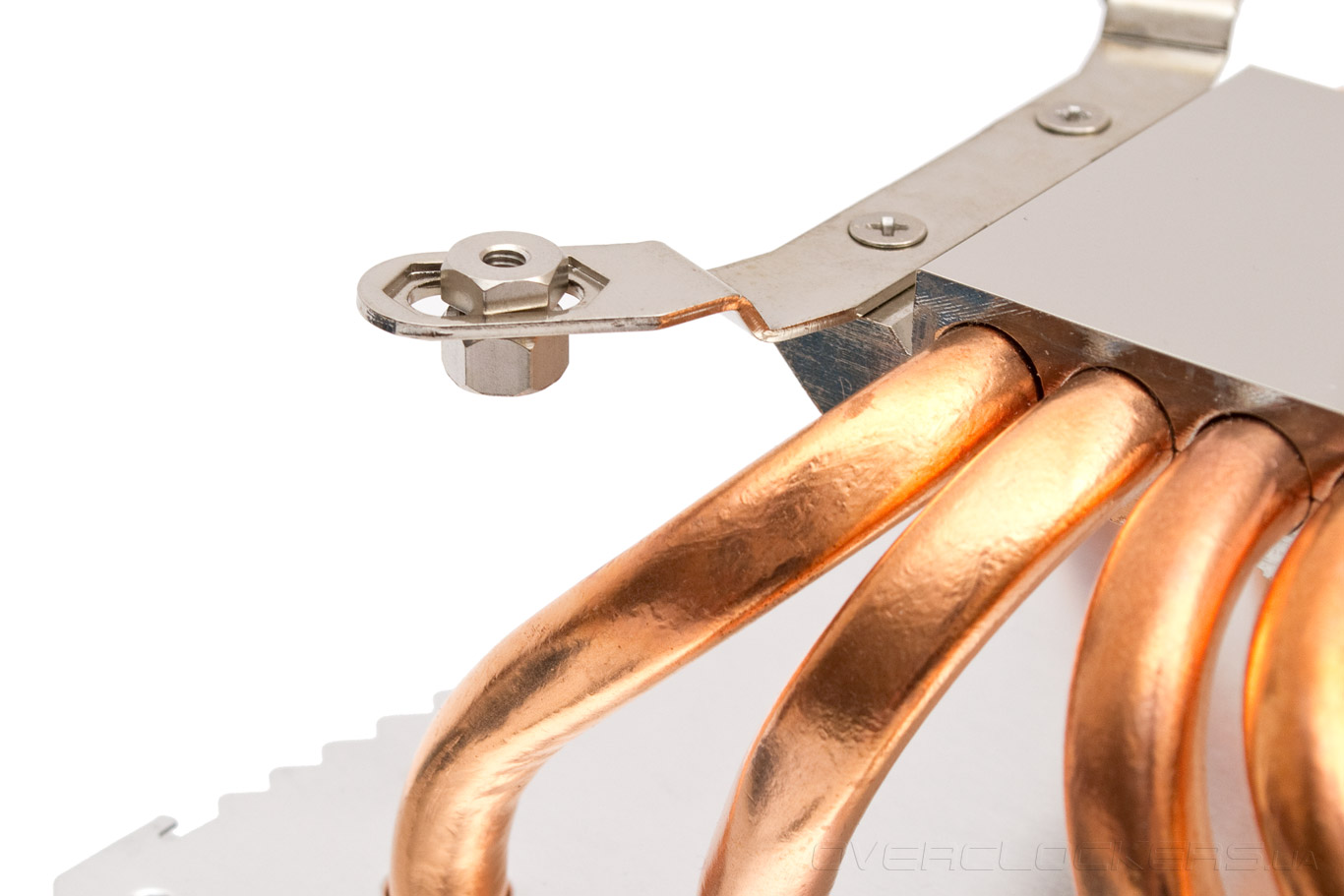 Восемь концов тепловых трубок закрыты металлическими колпачками. Пластина держится на четырех винтах, имеющих шляпки с формой под шестигранный ключ.