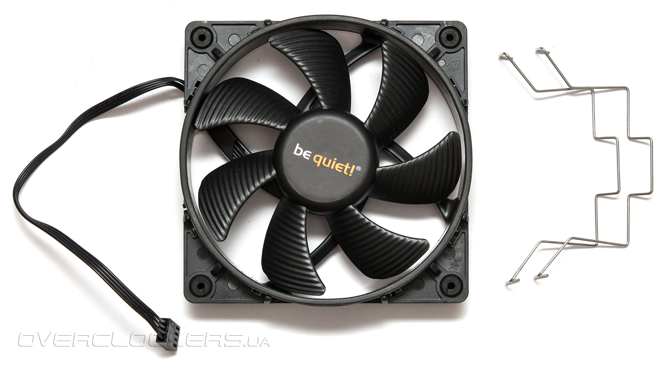 Данная модель имеет типоразмер 120 х 120 х 25 мм и поддерживает ШИМ-регулировку оборотов. Заявленный уровень шума составляет 7,8—21,4 дБ при скорости крыльчатки 900—1700 об/мин соответственно. Как и большинство других производителей, Be Quiet! занижает заявленные шумовые характеристики. При 1700 об/мин любой 120 мм кулер издаёт вполне различимый звук с расстояния около метра. А 21,4 дБ — это показатель, при котором звук с метровой дистанции практически не слышен. Максимальный воздушный поток составляет 57,2 куб. фут/мин.
