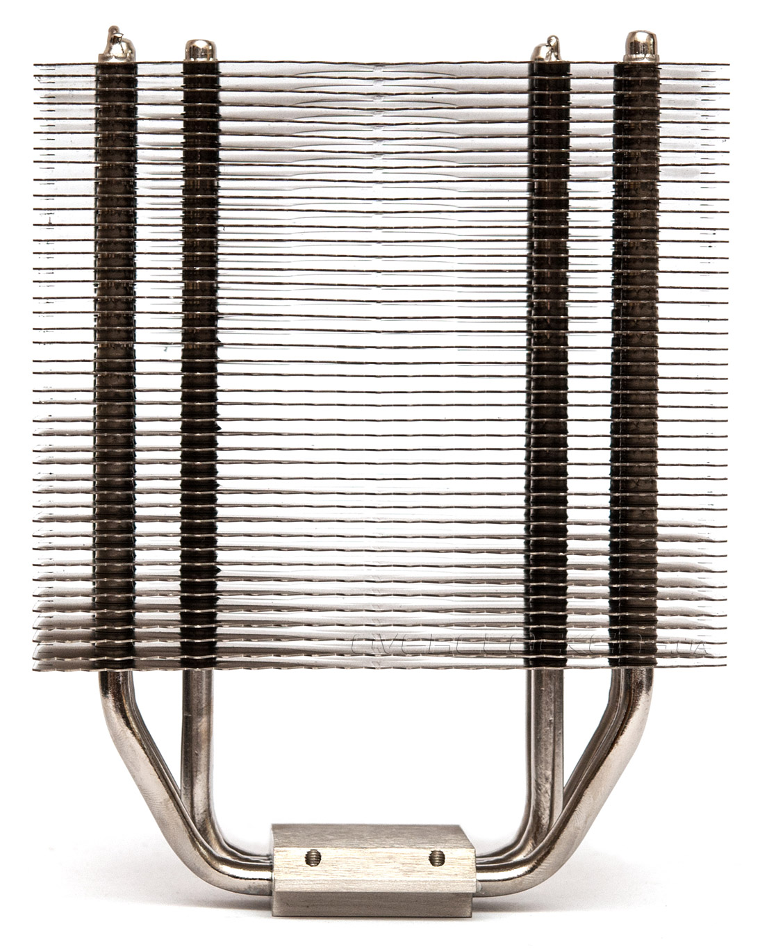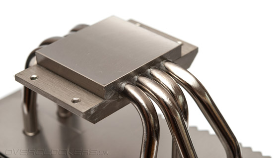 Пластины радиатора не припаяны к тепловым трубкам, но нанизаны очень плотно и надёжно. На первый взгляд может показаться, что пайка таки присутствует, но при детальном рассмотрении следов припоя мы не обнаружили.
