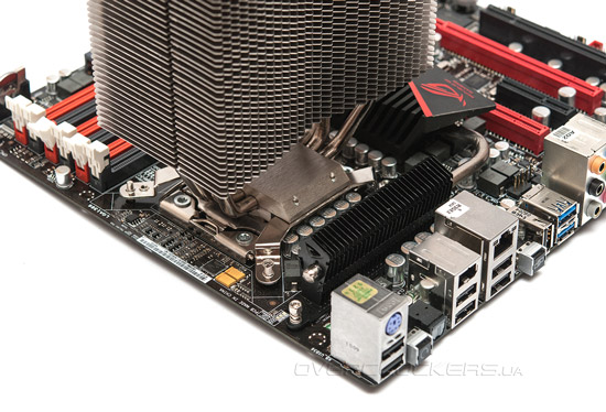 Установленный в классическом положении, кулер перекрывает ближайшие два слота DIMM и не даёт установить память с высокими радиаторами.