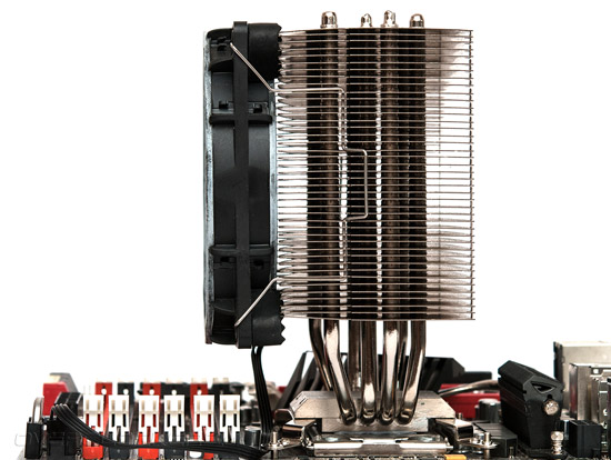 Форма изгиба тепловых трубок такова, что они стоят в две линии на пути воздушного потока. Такая конструкция применяется многими производителями и должна положительно сказываться на эффективности охлаждения.
