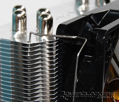 На верхней пластине по традиции красуется логотип компании, только уже другой. Перфорированных отверстий в пластинах нет. Тепловые трубки, как и в прототипе, пронизывают пластины радиаторы с небольшим смещением, чтобы более равномерно распределить по ним тепловую нагрузку.