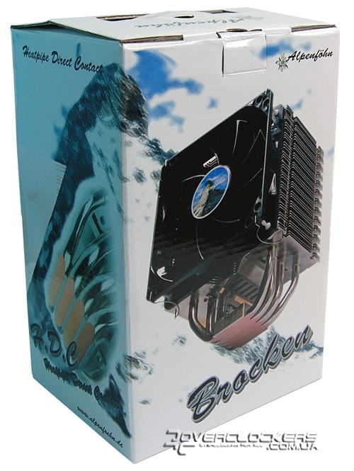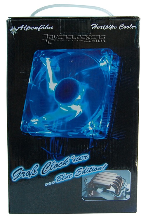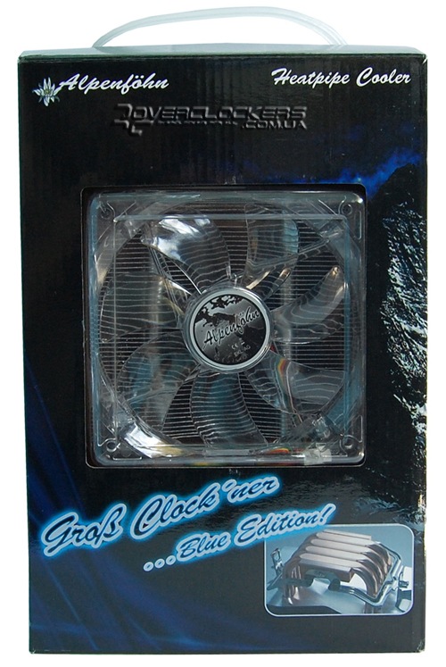Кулер поставляется в картонной коробке с окошком и пластиковой ручкой для переноски. На коробке можно заметить изображение горной заснеженной вершины, что является отличительной чертой упаковок почти всех кулеров данной компании, само название которой, Alpenfoehn, можно перевести как «альпийский ветер».