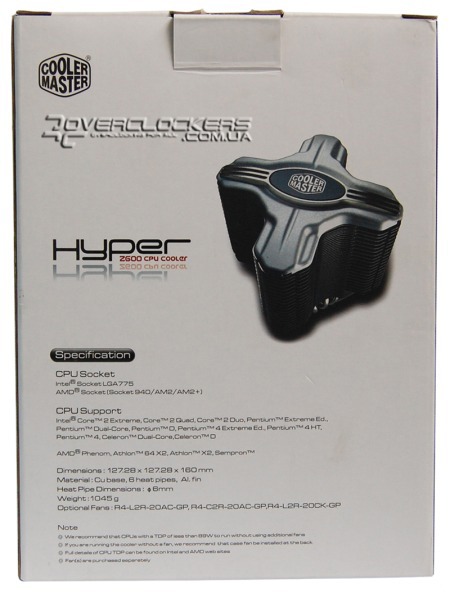 Рассматриваемые модели являются разными по конструкции и первая, Hyper Z600, отличается тем, что изначально позиционируется как пассивный кулер. Поставляется он в массивной картонной коробке, лицевую сторону которой занимает большой логотип.
