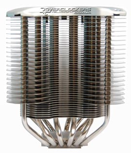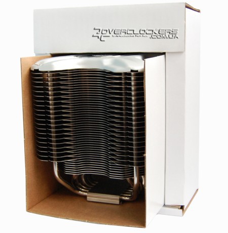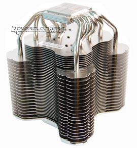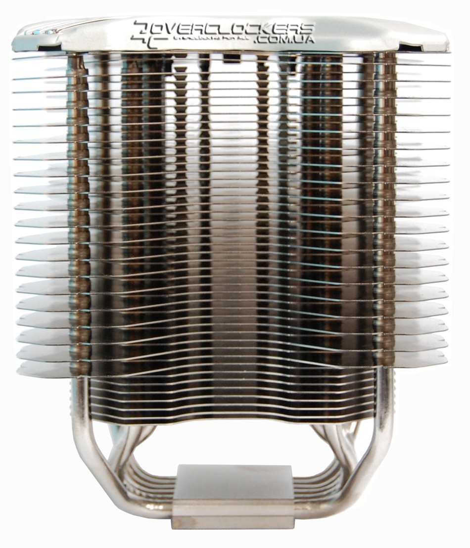 Кулер выполнен в виде башни. Пластины радиатора нанизаны на шесть тепловых трубок толщиной 6 мм. Форма радиатора довольно причудлива, выполнен он в виде буквы Х, при этом состоит из пластин двух типов.