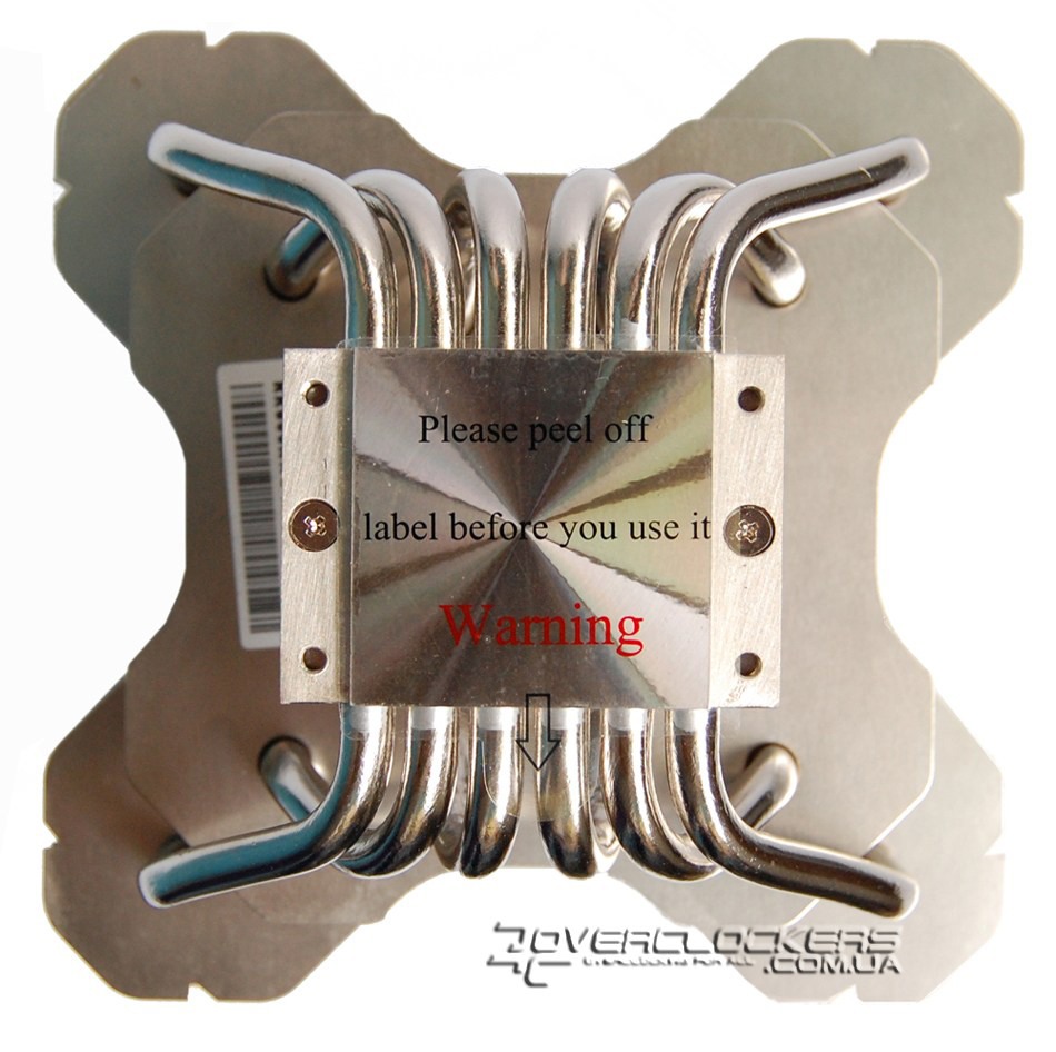 Сверху радиатор закрыт алюминиевой крышкой с логотипом компании, а основание кулера защищено наклейкой.