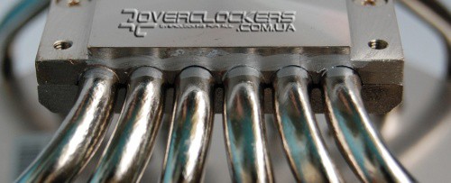 Это не особо то и страшно при условии качественного контакта с основанием. Но с другой стороны, верхняя крышка контактирует и с нижним основанием, которое является основным теплосьемником. Так что заполнение пустот теплопроводящей субстанцией или припоем положительно сказалось бы и на общей эффективности за счет увеличения площади контакта с трубками.
