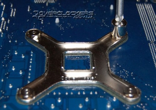 Для установки кулера придется извлекать материнскую плату. К основанию кулера прикручиваются две пластины с длинными винтами и резиновыми прокладками. С обратной стороны платы надевается backplate, на винты одеваются фиксирующие гайки и затягиваются с помощью специального ключа-головки из комплекта.
