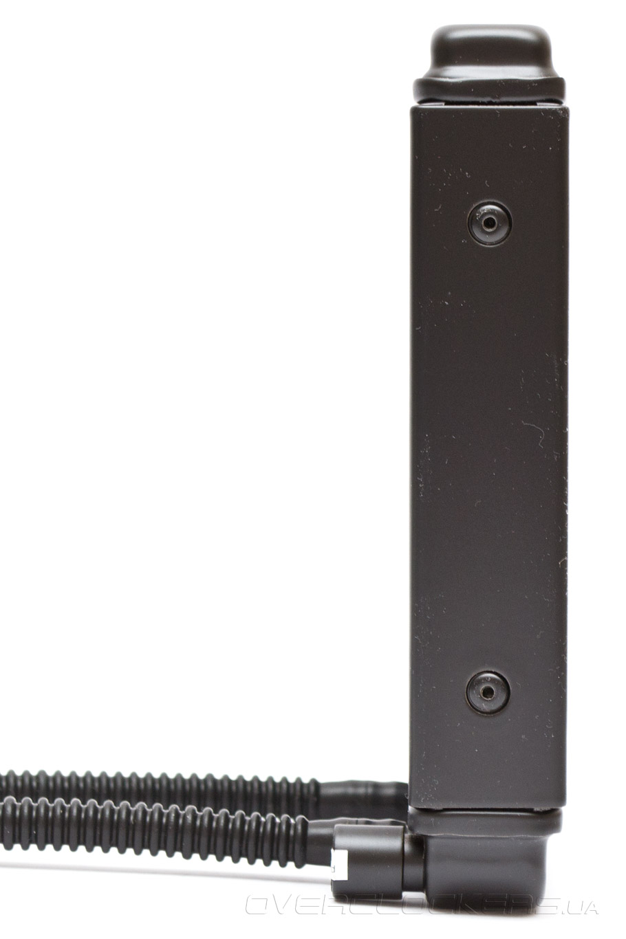 По бокам прикручены металлические пластины, упрочняющие конструкцию в целом и поддерживающие установку двух вентиляторов — спереди и сзади, типоразмера 120 мм (посадочные отверстия 105х105 мм).