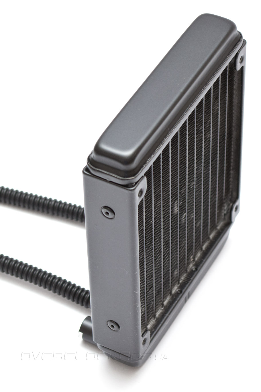 Радиатор считается 120-мм односекционным. Его фактические размеры — 154 мм в высоту, 120 мм в ширину и всего 28 мм в толщину. Эти параметры (особенно первый из них) следует учитывать при установке на заднюю стенку корпуса, чтобы избежать проблем с совместимостью.