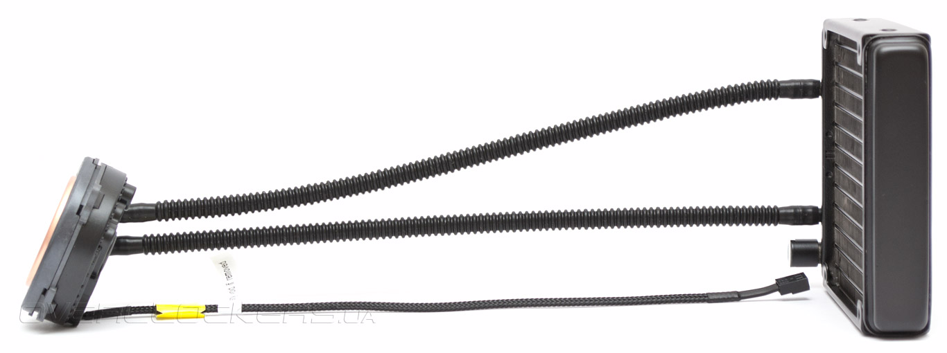 - 120-мм радиатор соединенный гофрированными шлангами с помпой и водоблоком;