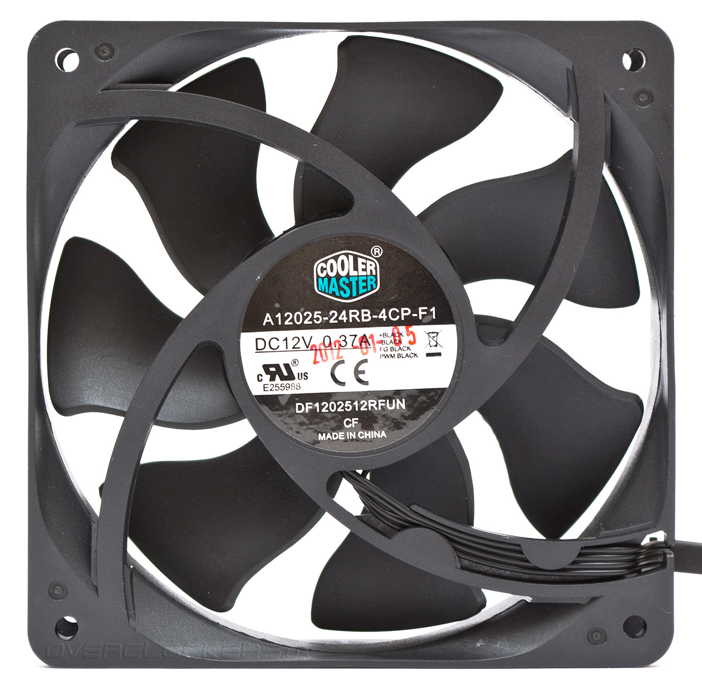 Единственный комплектный 120-мм вентилятор имеет четырехконтактное подключение к питанию. Длина шнура составляет 300 мм. Скорость вращения управляется путем ШИМ модуляции в диапазоне 600–2300 об/мин.