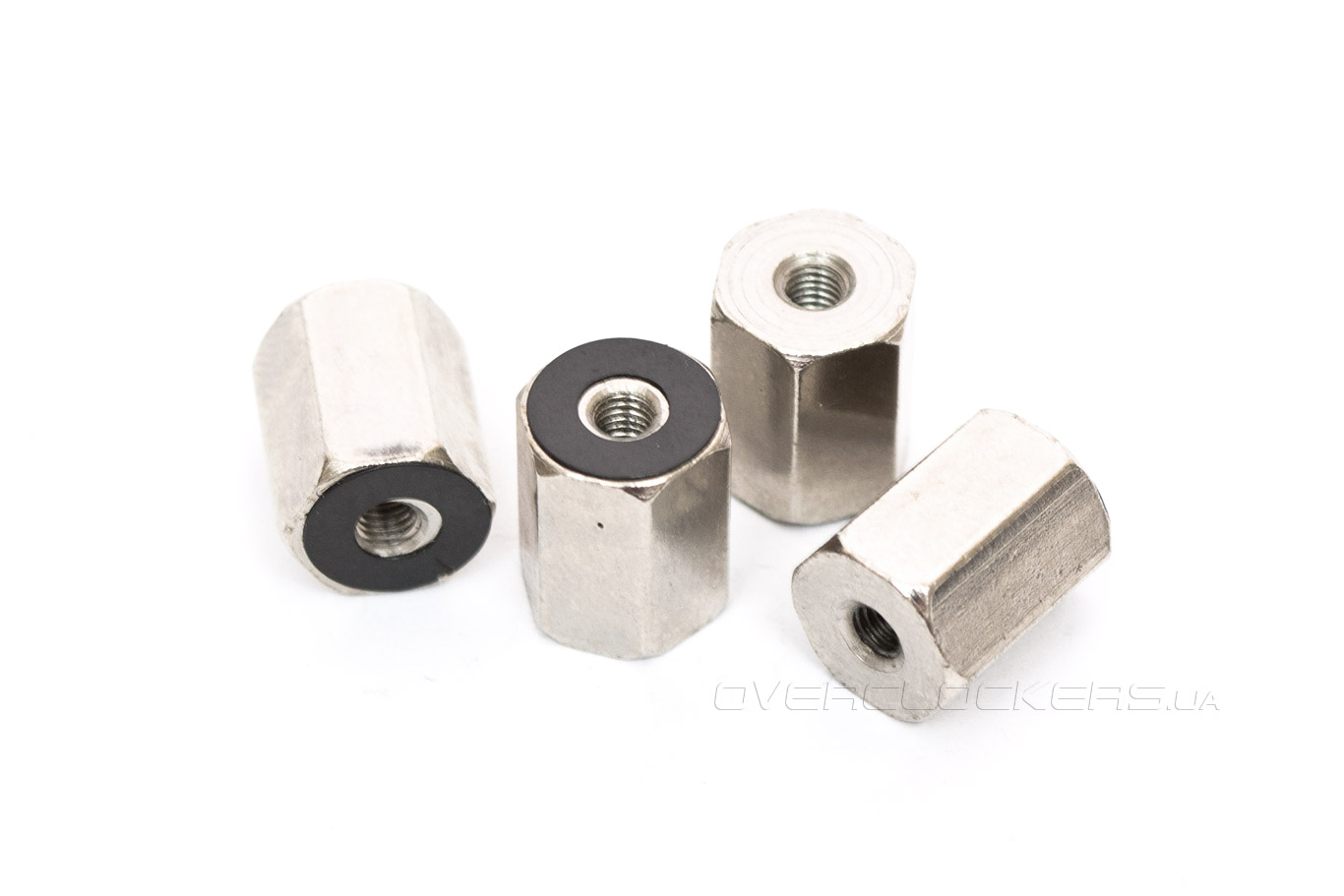 Далее нам понадобятся четыре стойки, с электроизоляционными наклейками. Отметим, что эти наклейки крайне липкие и после продолжительного использования отделить их от материнской платы может быть сложно. Поэтому, рекомендуем счистить клейкий слой заранее.