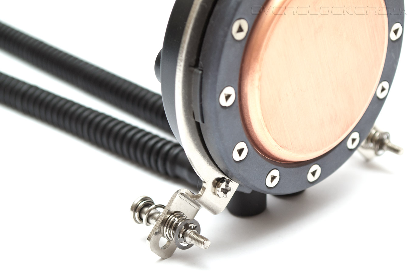 Перед установкой водоблока на процессор желательно закрепить радиатор на корпусе ПК и удостовериться, что длины и выворота шлангов хватает, чтобы дотянуться до разъема. Найти в корпусе место для Cooler Master Seidon 240M может оказаться гораздо сложнее, чем для его малогабаритного товарища Seidon 120М. Наносим термоинтерфейс, опускаем водоблок на место и последовательно затягиваем подпружиненные винты. Чтобы избежать перекоса, рекомендуем крутить их по очереди, по несколько оборотов за раз. Удобнее всего это делать отверткой с плоским жалом. Не забываем подключить питание помпы к свободному разъему на материнской плате.