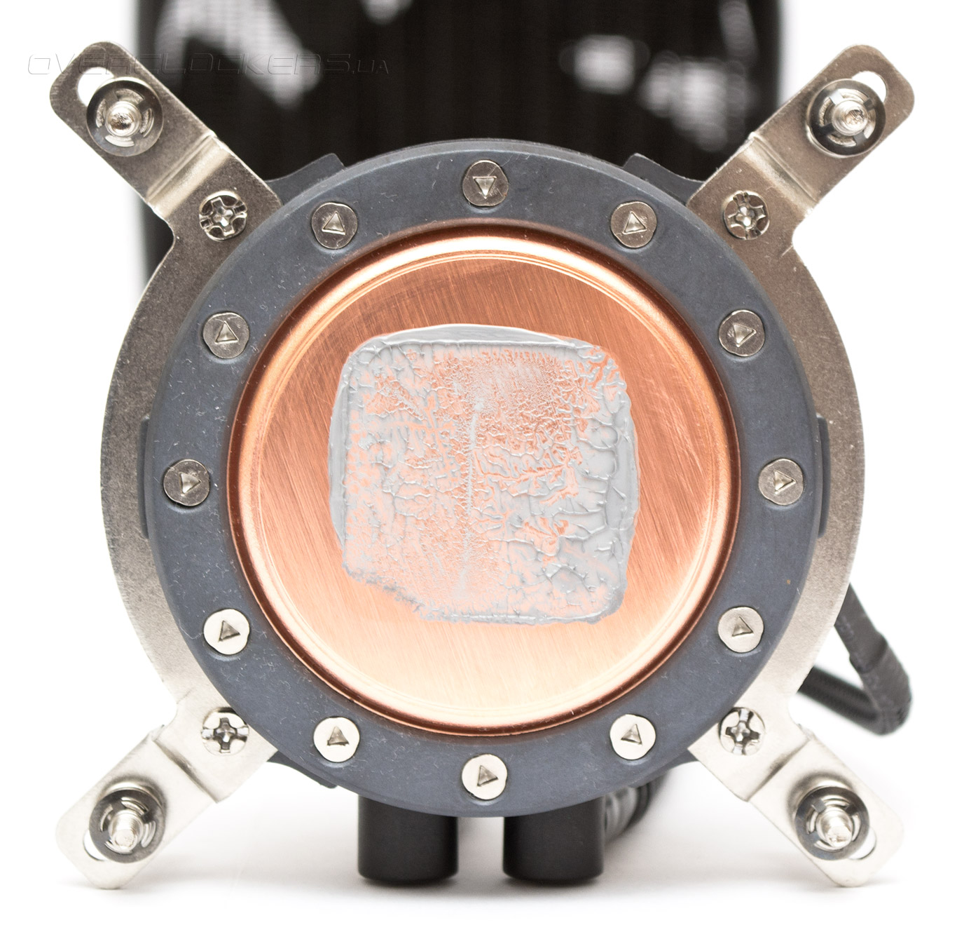 | Материал радиатора и конструкция | Алюминиевый двухсекционный водяной радиатор с ребрами ленточного типа. | Алюминиевый односекционный водяной радиатор с ребрами ленточного типа. | Вертикальная двухсекционная конструкция из алюминиевых пластин, нанизанных на 6 медных тепловых трубок диаметром 6 мм, расположенных U-образно. Тепловые трубки и основание никелированы, все соединения пропаяны. | Конструкция из алюминиевых пластин, нанизанных на 5 медных тепловых трубок диаметром 6 мм. Тепловые трубки проходят сквозь медное основание. |