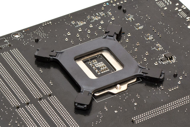 Передвигаем салазки крепежных винтов на усилительной пластине в нужное для LGA1155 среднее положение.