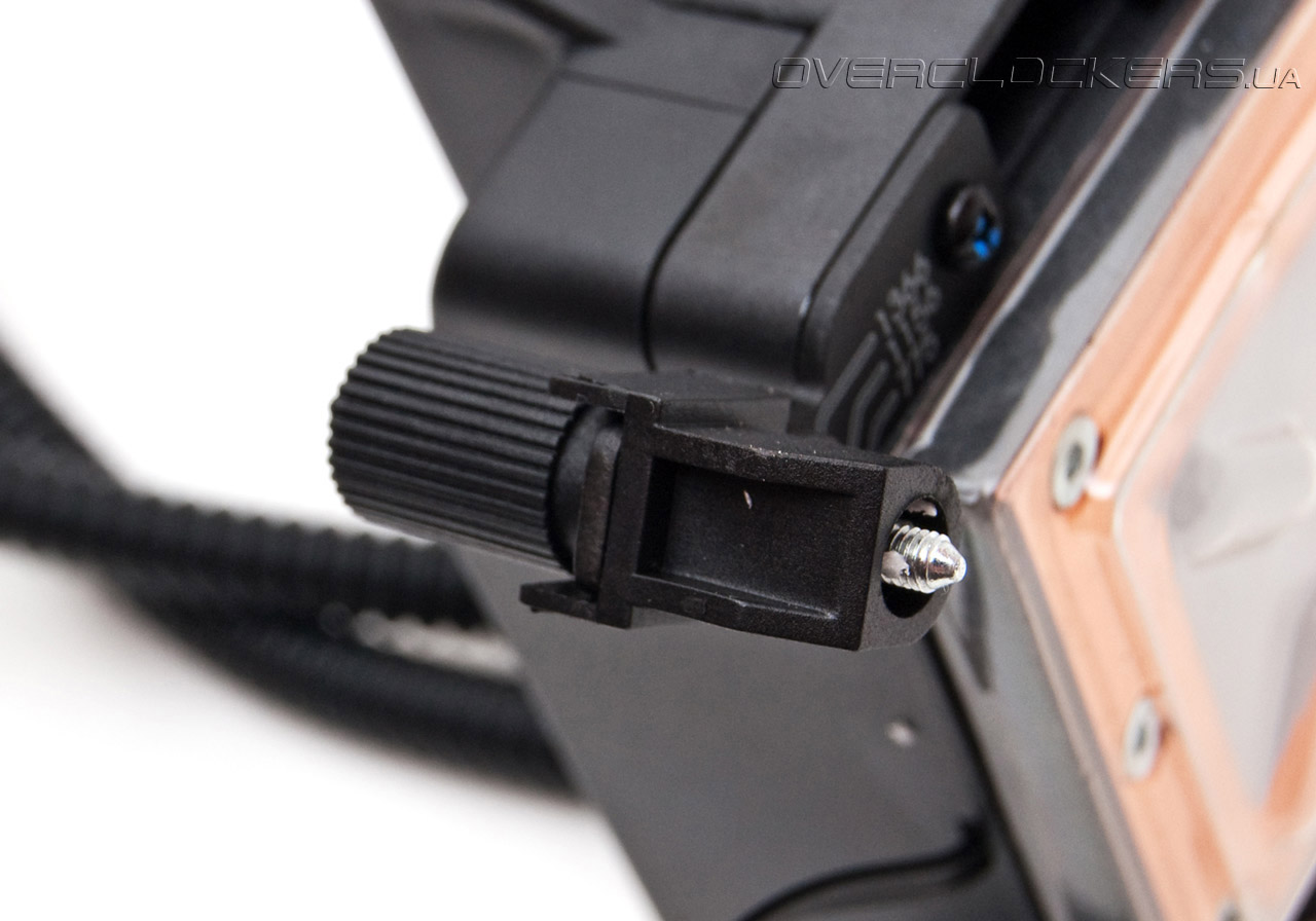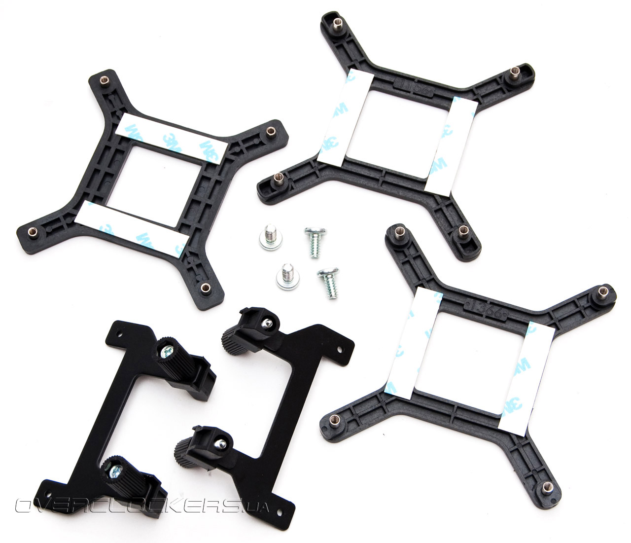 Легкий и компактный водоблок крепится к усилительной пластине с помощью четырех винтиков. Кстати, данное универсальное крепление заслуживает самых лестных слов. Для того чтобы подобрать нужное положение винтика, соответствующее расстоянию между монтажными отверстиями (LGA775 — 72 мм, LGA1156 — 75 мм, LGA1366 — 80 мм), достаточно потянуть винтик вверх и передвинуть его по салазке на нужное место. В целом, процедура установки занимает считанные минуты.