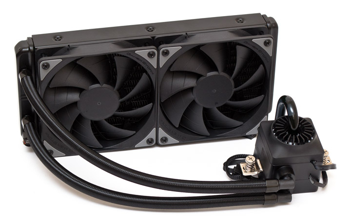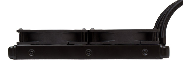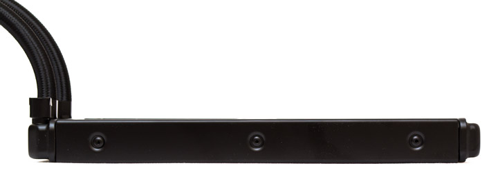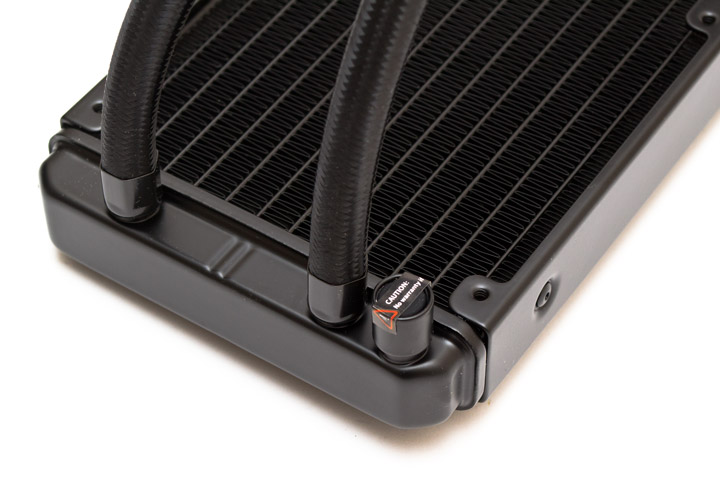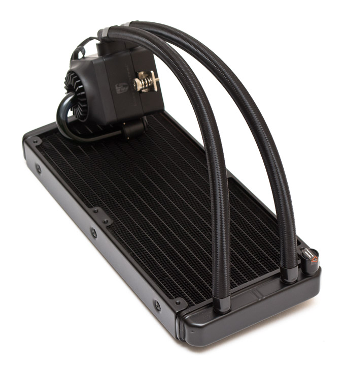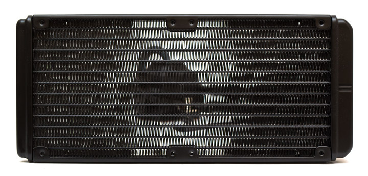 Радиатор изготовлен из алюминия, в нем есть два набора крепежных отверстий для двух 120-мм вентиляторов расположенных вплотную. Ребра радиатора ленточного типа, набраны с плотностью в 20 FPI (пластин на дюйм). Между ребрами, вдоль, тянутся 14 каналов, через которые прокачивается хладагент. Суммарная площадь рассеивания тепла составляет около 6300 см². Вес всей системы в сборе с вентиляторами — 1100 грамм.